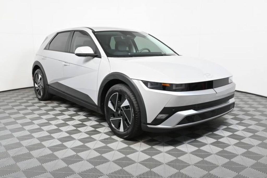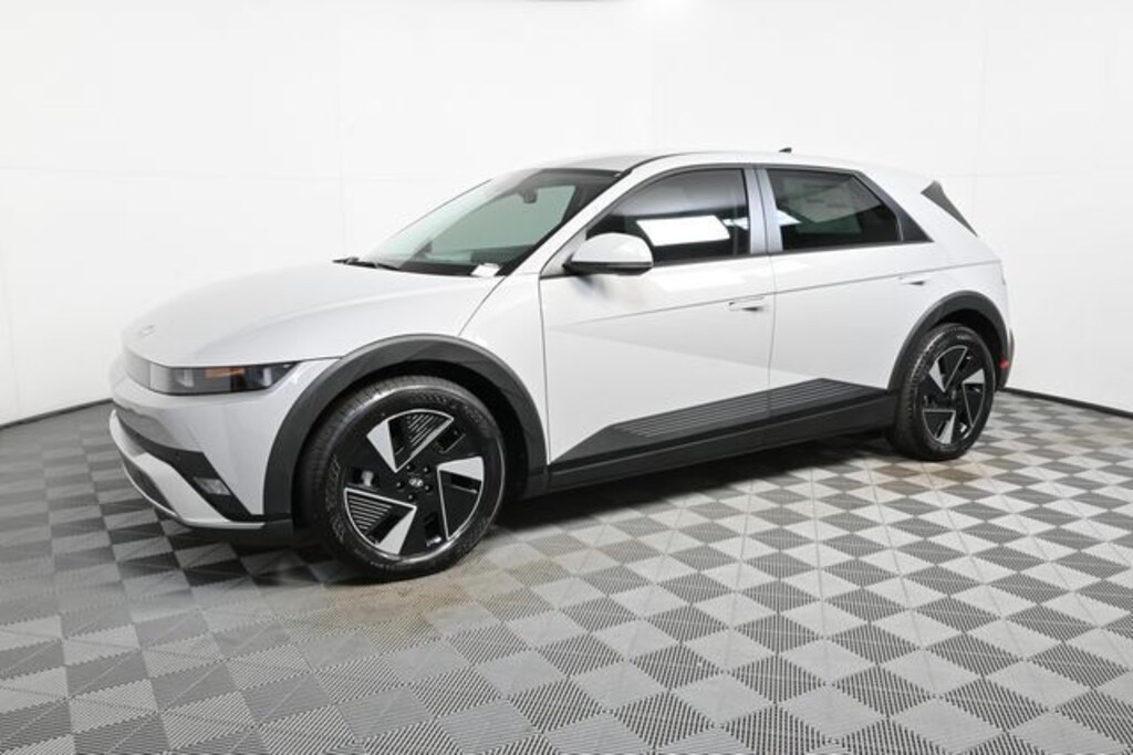 This 2026 Hyundai IONIQ 5 is equipped with 4-Wheel Disc Brakes, 6 Speakers, ABS brakes, Air Conditioning, Alloy wheels, AM/FM radio: SiriusXM, Apple CarPlay & Android Auto, Auto High-beam Headlights, Auto-dimming Rear-View mirror, Automatic temperature control, Bodyside moldings, Brake assist, Bumpers: body-color, Delay-off headlights, Driver door bin, Driver vanity mirror, Dual front impact airbags, Dual front side impact airbags, Electronic Stability Control, Emergency communication system: Bluelink+, Four wheel independent suspension, Front anti-roll bar, Front Bucket Seats, Front Center Armrest w/Storage, Front dual zone A/C, Front reading lights, Fully automatic headlights, Garage door transmitter: HomeLink, H-Tex Artifical Leather Seating Surfaces, harman/kardon® Speakers, Heated door mirrors, Heated Front Bucket Seats, Heated front seats, Illuminated entry, Low tire pressure warning, Navigation System, Occupant sensing airbag, Outside temperature display, Overhead airbag, Overhead console, Panic alarm, Passenger door bin, Passenger vanity mirror, Power door mirrors, Power driver seat, Power Liftgate, Power passenger seat, Power steering, Power windows, Radio: AM/FM/SiriusXM/HD Audio System, Rear anti-roll bar, Rear reading lights, Rear seat center armrest, Rear side impact airbag, Rear window defroster, Rear window wiper, Remote keyless entry, Security system, Speed control, Speed-sensing steering, Split folding rear seat, Spoiler, Steering wheel mounted audio controls, Telescoping steering wheel, Tilt steering wheel, Traction control, Trip computer, Turn signal indicator mirrors, Variably intermittent wipers, and Wheels: 19" x 7.5J Alloy. Not all rebates are compatible with all finance programs. Please see dealer for details and final price. $1500 - Hyundai HMF Dealer Choice : $1500 discount and 5.49% APR for 24 months. $44.09 per $1000 financed. Available to well qualified buyers who finance through Hyundai Motor Finance. H704. Exp. 12/01/2025