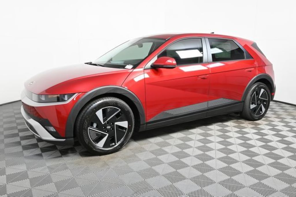 This 2026 Hyundai IONIQ 5 is equipped with Option Group 01, 4-Wheel Disc Brakes, 6 Speakers, ABS brakes, Air Conditioning, Alloy wheels, AM/FM radio: SiriusXM, Apple CarPlay & Android Auto, Auto High-beam Headlights, Auto-dimming Rear-View mirror, Automatic temperature control, Bodyside moldings, Brake assist, Bumpers: body-color, Delay-off headlights, Driver door bin, Driver vanity mirror, Dual front impact airbags, Dual front side impact airbags, Electronic Stability Control, Emergency communication system: Bluelink+, Four wheel independent suspension, Front anti-roll bar, Front Bucket Seats, Front Center Armrest w/Storage, Front dual zone A/C, Front reading lights, Fully automatic headlights, Garage door transmitter: HomeLink, H-Tex Artifical Leather Seating Surfaces, harman/kardon® Speakers, Heated door mirrors, Heated Front Bucket Seats, Heated front seats, Illuminated entry, Low tire pressure warning, Navigation System, Occupant sensing airbag, Outside temperature display, Overhead airbag, Overhead console, Panic alarm, Passenger door bin, Passenger vanity mirror, Power door mirrors, Power driver seat, Power Liftgate, Power passenger seat, Power steering, Power windows, Radio: AM/FM/SiriusXM/HD Audio System, Rear anti-roll bar, Rear reading lights, Rear seat center armrest, Rear side impact airbag, Rear window defroster, Rear window wiper, Remote keyless entry, Security system, Speed control, Speed-sensing steering, Split folding rear seat, Spoiler, Steering wheel mounted audio controls, Telescoping steering wheel, Tilt steering wheel, Traction control, Trip computer, Turn signal indicator mirrors, Variably intermittent wipers, and Wheels: 19" x 7.5J Alloy. Not all rebates are compatible with all finance programs. Please see dealer for details and final price. $1500 - Hyundai HMF Dealer Choice : $1500 discount and 5.49% APR for 24 months. $44.09 per $1000 financed. Available to well qualified buyers who finance through Hyundai Motor Finance. H704. Exp. 12/01/2025