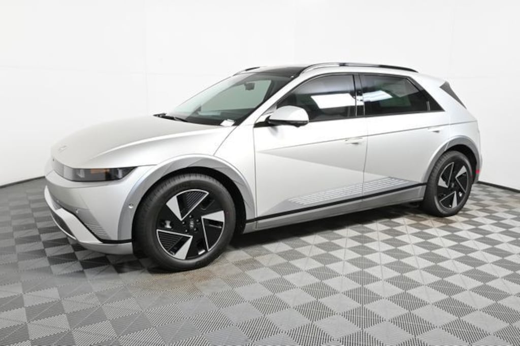 This 2026 Hyundai IONIQ 5 is equipped with Option Group 01, 4-Wheel Disc Brakes, 8 Speakers, ABS brakes, Air Conditioning, Alloy wheels, AM/FM radio: SiriusXM, Apple CarPlay & Android Auto, Auto High-beam Headlights, Auto-dimming Rear-View mirror, Automatic temperature control, Bodyside moldings, Brake assist, Bumpers: body-color, Delay-off headlights, Driver door bin, Driver vanity mirror, Dual front impact airbags, Dual front side impact airbags, Electronic Stability Control, Emergency communication system: Bluelink+, Four wheel independent suspension, Front anti-roll bar, Front Bucket Seats, Front Center Armrest w/Storage, Front dual zone A/C, Front reading lights, Fully automatic headlights, Garage door transmitter: HomeLink, H-Tex Artifical Leather Seating Surfaces, Heads-Up Display, Heated door mirrors, Heated front seats, Heated rear seats, Heated steering wheel, Illuminated entry, Low tire pressure warning, Memory seat, Navigation System, Occupant sensing airbag, Outside temperature display, Overhead airbag, Overhead console, Panic alarm, Passenger door bin, Passenger vanity mirror, Power door mirrors, Power driver seat, Power Liftgate, Power passenger seat, Power steering, Power windows, Radio: AM/FM/SiriusXM/HD Audio System, Rain sensing wipers, Rear anti-roll bar, Rear reading lights, Rear seat center armrest, Rear side impact airbag, Rear window defroster, Rear window wiper, Remote keyless entry, Security system, Speed control, Speed-sensing steering, Split folding rear seat, Spoiler, Steering wheel mounted audio controls, Telescoping steering wheel, Tilt steering wheel, Traction control, Trip computer, Turn signal indicator mirrors, Variably intermittent wipers, Ventilated Front AND Rear Seats, Ventilated front seats, and Wheels: 19" x 7.5J Alloy. Not all rebates are compatible with all finance programs. Please see dealer for details and final price. $1500 - Hyundai HMF Dealer Choice : $1500 discount and 5.49% APR for 24 months. $44.09 per $1000 financed. Available to well qualified buyers who finance through Hyundai Motor Finance. H704. Exp. 12/01/2025