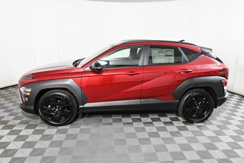 This 2026 Hyundai Kona is equipped with Option Group 01, 4-Wheel Disc Brakes, 6 Speakers, ABS brakes, Air Conditioning, Alloy wheels, AM/FM radio: SiriusXM, Apple CarPlay & Android Auto, Auto High-beam Headlights, Automatic temperature control, Brake assist, Bumpers: body-color, Cargo Organizer, Cargo Tray, Carpeted Floor Mats, Cloth Seat Trim, Delay-off headlights, Driver door bin, Driver vanity mirror, Dual front impact airbags, Dual front side impact airbags, Electronic Stability Control, Emergency communication system: Bluelink+, Exterior Parking Camera Rear, First Aid Kit, Front anti-roll bar, Front Bucket Seats, Front Center Armrest, Front dual zone A/C, Front reading lights, Front wheel independent suspension, Fully automatic headlights, Heated door mirrors, Heated Front Bucket Seats, Heated front seats, Illuminated entry, Leather steering wheel, Low tire pressure warning, Mud Guards, Occupant sensing airbag, Outside temperature display, Overhead airbag, Panic alarm, Passenger door bin, Passenger vanity mirror, Power door mirrors, Power steering, Power windows, Radio: AM/FM/SiriusXM/HD Radio Audio System, Rear seat center armrest, Rear window defroster, Rear window wiper, Remote keyless entry, Security system, Speed control, Speed-sensing steering, Split folding rear seat, Spoiler, Steering wheel mounted audio controls, Tachometer, Telescoping steering wheel, Tilt steering wheel, Traction control, Trip computer, Turn signal indicator mirrors, Variably intermittent wipers, and Wheels: 18" x 7.0J Black Alloy. Not all rebates are compatible with all finance programs. Please see dealer for details and final price. $750 - Hyundai HMF Dealer Choice : $750 discount and 5.99% APR for 24 months. $44.32 per $1000 financed. Available to well qualified buyers who finance through Hyundai Motor Finance. H704. Exp. 11/03/2025