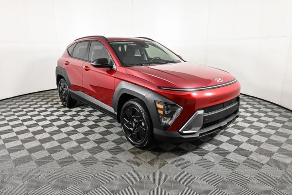 This 2026 Hyundai Kona is equipped with Option Group 01, 4-Wheel Disc Brakes, 6 Speakers, ABS brakes, Air Conditioning, All-Weather Fitted Liners, Alloy wheels, AM/FM radio: SiriusXM, Apple CarPlay & Android Auto, Auto High-beam Headlights, Automatic temperature control, Brake assist, Bumpers: body-color, Cargo Blocks, Cargo Net, Cargo Tray, Carpeted Floor Mats, Cloth Seat Trim, Delay-off headlights, Driver door bin, Driver vanity mirror, Dual front impact airbags, Dual front side impact airbags, Electronic Stability Control, Emergency communication system: None, Exterior Parking Camera Rear, First Aid Kit, Front anti-roll bar, Front Bucket Seats, Front Center Armrest, Front dual zone A/C, Front reading lights, Front wheel independent suspension, Fully automatic headlights, Heated door mirrors, Heated Front Bucket Seats, Heated front seats, Illuminated entry, Leather steering wheel, Low tire pressure warning, Mud Guards, Occupant sensing airbag, Outside temperature display, Overhead airbag, Panic alarm, Passenger door bin, Passenger vanity mirror, Power door mirrors, Power steering, Power windows, Radio: AM/FM/SiriusXM/HD Audio System, Rear seat center armrest, Rear window defroster, Rear window wiper, Remote keyless entry, Security system, Speed control, Speed-sensing steering, Split folding rear seat, Spoiler, Steering wheel mounted audio controls, Tachometer, Telescoping steering wheel, Tilt steering wheel, Traction control, Trip computer, Variably intermittent wipers, and Wheels: 18" x 7.0J Black Alloy. Not all rebates are compatible with all finance programs. Please see dealer for details and final price. $1750 - Hyundai HMF Dealer Choice : $1750 discount and 5.49% APR for 24 months. $44.09 per $1000 financed. Available to well qualified buyers who finance through Hyundai Motor Finance. H704. Exp. 01/02/2026