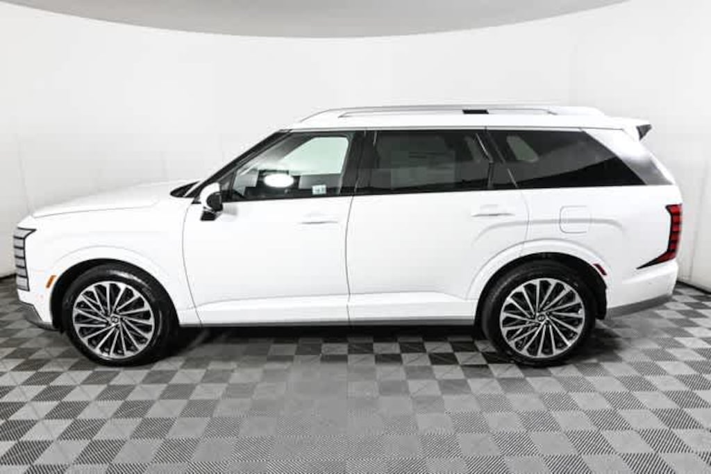 Leather Seats, Third Row Seat, Navigation, Quad Bucket Seats, Power Liftgate, Rear Air, Heated Driver Seat, Heated Rear Seat, Cooled Driver Seat, Cooled Rear Seat Rear Spoiler, MP3 Player, Rear Seat Audio Controls, Keyless Entry. Hyundai Calligraphy with Creamy White Pearl exterior and Black interior features a V6 Cylinder Engine with 287 HP at 5800 RPM*.