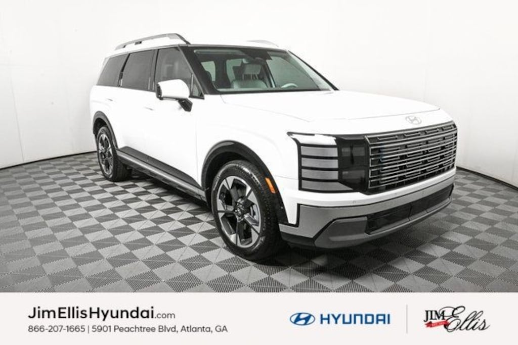 This 2026 Hyundai Palisade is equipped with Option Group 01, 14 Speakers, 3rd row seats: split-bench, 4-Wheel Disc Brakes, ABS brakes, Air Conditioning, Alloy wheels, AM/FM radio: SiriusXM, Apple CarPlay & Android Auto, Audio memory, Auto High-beam Headlights, Auto-dimming door mirrors, Auto-dimming Rear-View mirror, Auto-leveling suspension, Automatic temperature control, Brake assist, Bumpers: body-color, Cargo Net, Cargo Tray, Carpeted Floor Mats, Compass, Delay-off headlights, Driver door bin, Driver vanity mirror, Dual front impact airbags, Dual front side impact airbags, Electronic Stability Control, Emergency communication system: Bluelink+, Exterior Parking Camera Rear, First Aid Kit, Four wheel independent suspension, Front anti-roll bar, Front Bucket Seats, Front Center Armrest, Front dual zone A/C, Front reading lights, Fully automatic headlights, Garage door transmitter: HomeLink, Genuine wood console insert, Genuine wood dashboard insert, Heated door mirrors, Heated front seats, Heated rear seats, Heated steering wheel, HVAC memory, Illuminated entry, Knee airbag, Leather Seat Trim, Leather steering wheel, Low tire pressure warning, Memory seat, Mud Guards, Navigation System, Occupant sensing airbag, Outside temperature display, Overhead airbag, Overhead console, Panic alarm, Passenger door bin, Passenger vanity mirror, Power door mirrors, Power driver seat, Power Liftgate, Power moonroof, Power passenger seat, Power steering, Power windows, Radio data system, Radio: Infotainment Navigation System, Rear air conditioning, Rear anti-roll bar, Rear audio controls, Rear reading lights, Rear side impact airbag, Rear window defroster, Rear window wiper, Reclining 3rd row seat, Remote keyless entry, Security system, Severe Weather Kit, Side Steps, Speed control, Split folding rear seat, Spoiler, Steering wheel mounted audio controls, Tachometer, Telescoping steering wheel, Tilt steering wheel, Traction control, Trip computer, Turn signal indicator mirrors, Variably intermittent wipers, Ventilated Front AND Rear Seats, Ventilated front seats, Ventilated rear seats, and Wheels: 20" x 8.0J Alloy. Not all rebates are compatible with all finance programs. Please see dealer for details and final price. $1250 - Hyundai HMF Dealer Choice : $1250 discount and 5.99% APR for 24 months. $44.32 per $1000 financed. Available to well qualified buyers who finance through Hyundai Motor Finance. H704. Exp. 11/03/2025