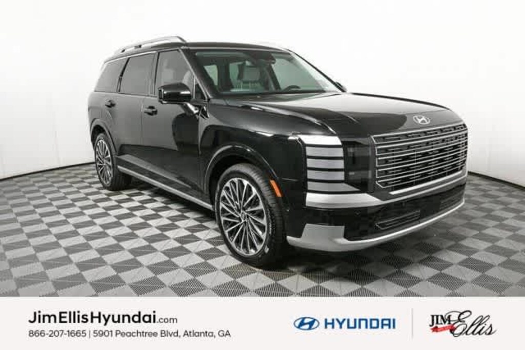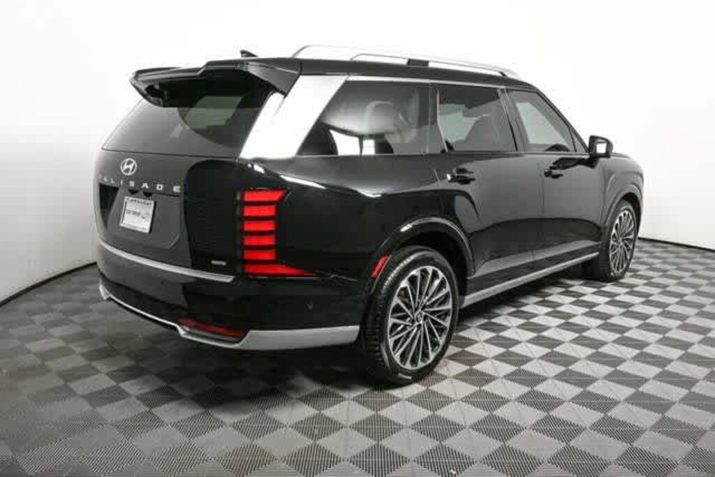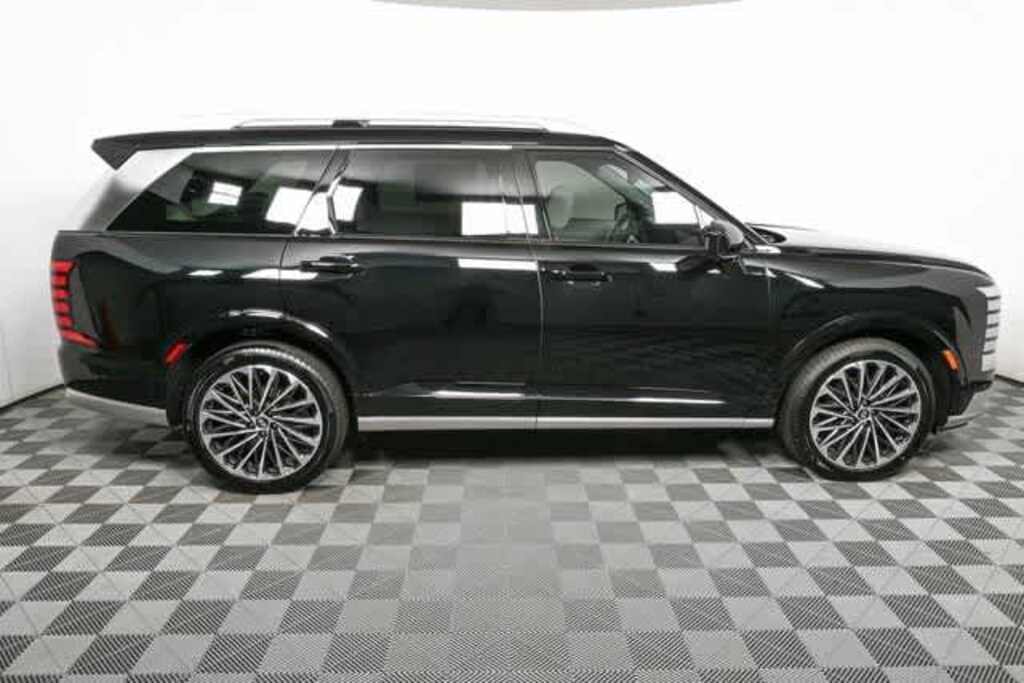 Leather Seats, Third Row Seat, Navigation, All Wheel Drive, Quad Bucket Seats, Power Liftgate, Rear Air, Heated Driver Seat, Heated Rear Seat, Cooled Driver Seat Rear Spoiler, MP3 Player, Rear Seat Audio Controls, Privacy Glass. Hyundai Calligraphy with Abyss Black Pearl exterior and Brown interior features a V6 Cylinder Engine with 287 HP at 5800 RPM*.