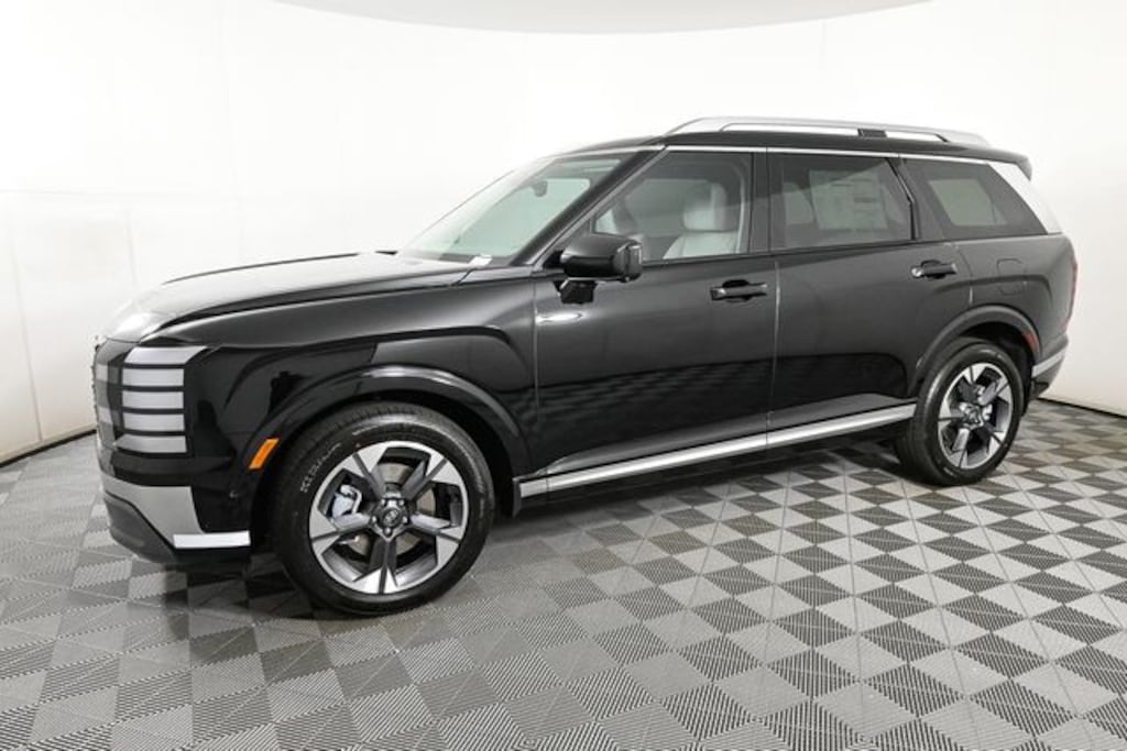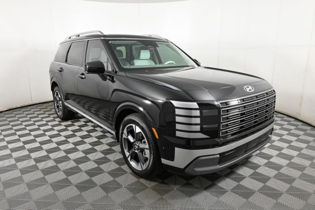 This 2026 Hyundai Palisade is equipped with Option Group 01, 14 Speakers, 3rd row seats: split-bench, 4-Wheel Disc Brakes, ABS brakes, Air Conditioning, All-Season Fitted Liners, Alloy wheels, AM/FM radio: SiriusXM, Apple CarPlay & Android Auto, Audio memory, Auto High-beam Headlights, Auto-dimming door mirrors, Auto-dimming Rear-View mirror, Auto-leveling suspension, Automatic temperature control, Brake assist, Bumpers: body-color, Cargo Blocks, Cargo Net, Carpeted Floor Mats, Compass, Delay-off headlights, Driver door bin, Driver vanity mirror, Dual front impact airbags, Dual front side impact airbags, Electronic Stability Control, Emergency communication system: Bluelink+, Exterior Parking Camera Rear, First Aid Kit, Four wheel independent suspension, Front anti-roll bar, Front Bucket Seats, Front Center Armrest, Front dual zone A/C, Front reading lights, Fully automatic headlights, Garage door transmitter: HomeLink, Genuine wood console insert, Genuine wood dashboard insert, Heated door mirrors, Heated front seats, Heated rear seats, Heated steering wheel, HVAC memory, Illuminated entry, Knee airbag, Leather Seat Trim, Leather steering wheel, Low tire pressure warning, Memory seat, Mud Guards, Navigation System, Occupant sensing airbag, Outside temperature display, Overhead airbag, Overhead console, Panic alarm, Passenger door bin, Passenger vanity mirror, Power door mirrors, Power driver seat, Power Liftgate, Power moonroof, Power passenger seat, Power steering, Power windows, Radio data system, Radio: Infotainment Navigation System, Rear air conditioning, Rear anti-roll bar, Rear audio controls, Rear reading lights, Rear side impact airbag, Rear window defroster, Rear window wiper, Reclining 3rd row seat, Remote keyless entry, Security system, Side Steps, Speed control, Split folding rear seat, Spoiler, Steering wheel mounted audio controls, Tachometer, Telescoping steering wheel, Tilt steering wheel, Traction control, Trip computer, Turn signal indicator mirrors, Variably intermittent wipers, Ventilated Front AND Rear Seats, Ventilated front seats, Ventilated rear seats, and Wheels: 20" x 8.0J Alloy. Not all rebates are compatible with all finance programs. Please see dealer for details and final price. $1250 - Hyundai HMF Dealer Choice : $1250 discount and 5.99% APR for 24 months. $44.32 per $1000 financed. Available to well qualified buyers who finance through Hyundai Motor Finance. H704. Exp. 11/03/2025