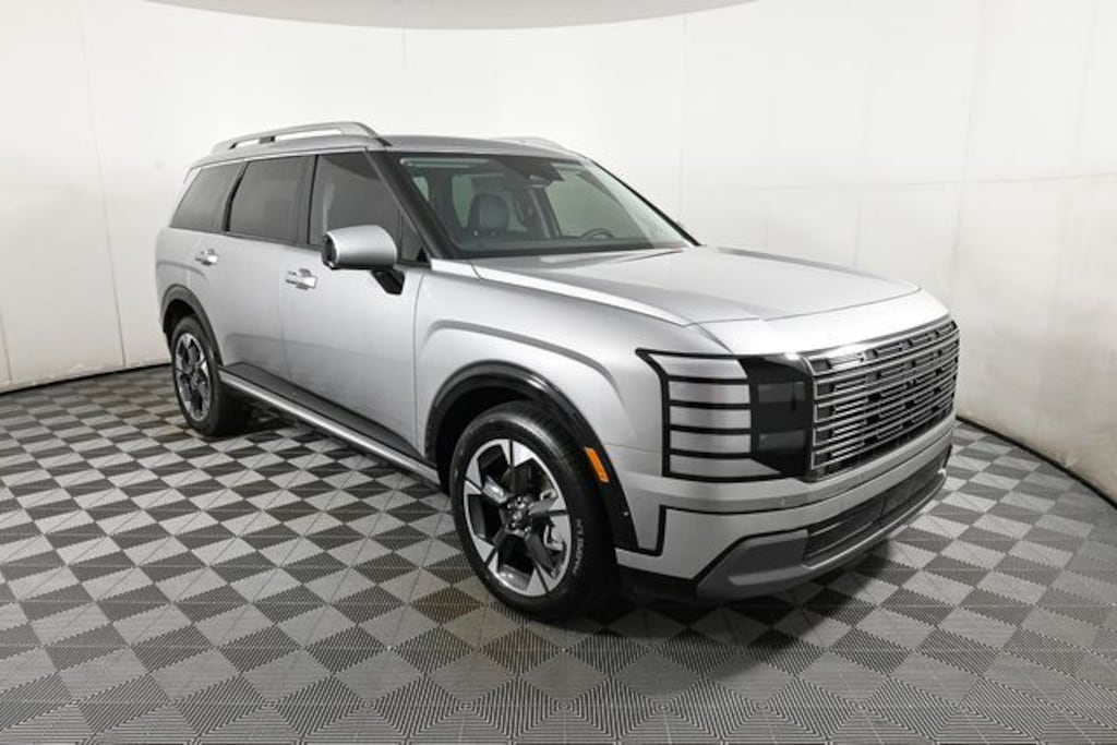 This 2026 Hyundai Palisade is equipped with Option Group 01, 14 Speakers, 3rd row seats: split-bench, 4-Wheel Disc Brakes, ABS brakes, Air Conditioning, Alloy wheels, AM/FM radio: SiriusXM, Apple CarPlay & Android Auto, Audio memory, Auto High-beam Headlights, Auto-dimming door mirrors, Auto-dimming Rear-View mirror, Auto-leveling suspension, Automatic temperature control, Brake assist, Bumpers: body-color, Cargo Cover, Cargo Net, Cargo Tray, Carpeted Floor Mats, Compass, Delay-off headlights, Driver door bin, Driver vanity mirror, Dual front impact airbags, Dual front side impact airbags, Electronic Stability Control, Emergency communication system: Bluelink+, Exterior Parking Camera Rear, First Aid Kit, Four wheel independent suspension, Front anti-roll bar, Front Bucket Seats, Front Center Armrest, Front dual zone A/C, Front reading lights, Fully automatic headlights, Garage door transmitter: HomeLink, Genuine wood console insert, Genuine wood dashboard insert, Heated door mirrors, Heated front seats, Heated rear seats, Heated steering wheel, HVAC memory, Illuminated entry, Knee airbag, Leather Seat Trim, Leather steering wheel, Low tire pressure warning, Memory seat, Navigation System, Occupant sensing airbag, Outside temperature display, Overhead airbag, Overhead console, Panic alarm, Passenger door bin, Passenger vanity mirror, Power door mirrors, Power driver seat, Power Liftgate, Power moonroof, Power passenger seat, Power steering, Power windows, Radio data system, Radio: Infotainment Navigation System, Rear air conditioning, Rear anti-roll bar, Rear audio controls, Rear reading lights, Rear side impact airbag, Rear window defroster, Rear window wiper, Reclining 3rd row seat, Remote keyless entry, Security system, Speed control, Split folding rear seat, Spoiler, Steering wheel mounted audio controls, Tachometer, Telescoping steering wheel, Tilt steering wheel, Traction control, Trip computer, Turn signal indicator mirrors, Variably intermittent wipers, Ventilated Front AND Rear Seats, Ventilated front seats, Ventilated rear seats, and Wheels: 20" x 8.0J Alloy. Not all rebates are compatible with all finance programs. Please see dealer for details and final price. $1250 - Hyundai HMF Dealer Choice : $1250 discount and 5.99% APR for 24 months. $44.32 per $1000 financed. Available to well qualified buyers who finance through Hyundai Motor Finance. H704. Exp. 11/03/2025