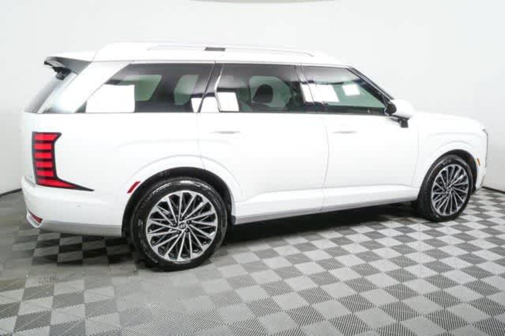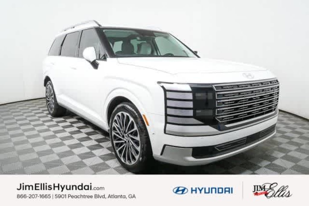 Leather Seats, Third Row Seat, Navigation, All Wheel Drive, Quad Bucket Seats, Power Liftgate, Rear Air, Heated Driver Seat, Heated Rear Seat, Cooled Driver Seat. Rear Spoiler, MP3 Player, Rear Seat Audio Controls, Privacy Glass. Hyundai Calligraphy with Creamy White Pearl exterior and Gray/Navy interior features a 4 Cylinder Engine with 329 HP at 5800 RPM*.