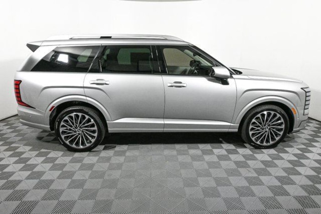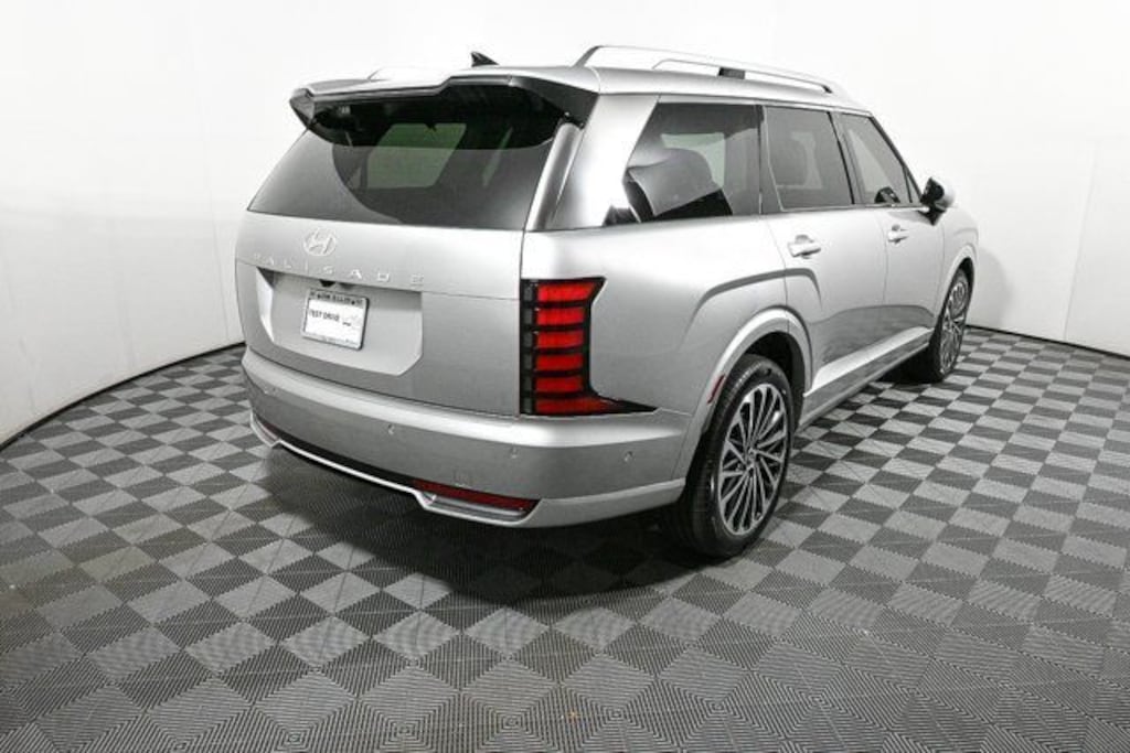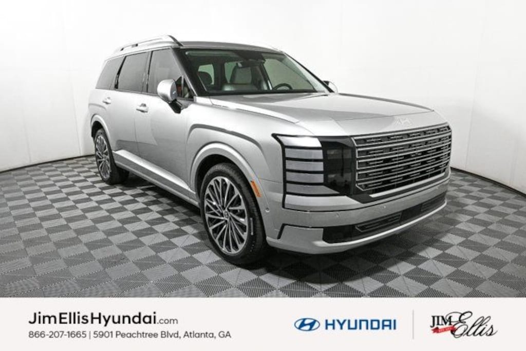 This 2026 Hyundai Palisade is equipped with Option Group 01, 14 Speakers, 3rd row seats: split-bench, 4-Wheel Disc Brakes, ABS brakes, Air Conditioning, Alloy wheels, AM/FM radio: SiriusXM, Apple CarPlay & Android Auto, Audio memory, Auto High-beam Headlights, Auto-dimming door mirrors, Auto-dimming Rear-View mirror, Auto-leveling suspension, Automatic temperature control, Brake assist, Bumpers: body-color, Cargo Net, Cargo Tray, Carpeted Floor Mats, Compass, Delay-off headlights, Driver door bin, Driver vanity mirror, Dual front impact airbags, Dual front side impact airbags, Electronic Stability Control, Emergency communication system: Bluelink+, Exterior Parking Camera Rear, First Aid Kit, Four wheel independent suspension, Front anti-roll bar, Front Bucket Seats, Front Center Armrest, Front dual zone A/C, Front reading lights, Fully automatic headlights, Garage door transmitter: HomeLink, Genuine wood console insert, Genuine wood dashboard insert, Heads-Up Display, Heated door mirrors, Heated front seats, Heated rear seats, Heated steering wheel, HVAC memory, Illuminated entry, Knee airbag, Leather steering wheel, Low tire pressure warning, Memory seat, Navigation System, Occupant sensing airbag, Outside temperature display, Overhead airbag, Overhead console, Panic alarm, Passenger door bin, Passenger vanity mirror, Power door mirrors, Power driver seat, Power Liftgate, Power moonroof, Power passenger seat, Power steering, Power windows, Premium Nappa Leather Seat Trim, Radio data system, Radio: Infotainment Navigation System, Rain sensing wipers, Rear air conditioning, Rear anti-roll bar, Rear audio controls, Rear reading lights, Rear side impact airbag, Rear window defroster, Rear window wiper, Reclining 3rd row seat, Remote keyless entry, Roadside Assistance Kit, Security system, Severe Weather Kit, Speed control, Split folding rear seat, Spoiler, Steering wheel mounted audio controls, Tachometer, Telescoping steering wheel, Tilt steering wheel, Traction control, Trip computer, Turn signal indicator mirrors, Variably intermittent wipers, Ventilated Front AND Rear Seats, Ventilated front seats, Ventilated rear seats, and Wheels: 21" x 8.5J Alloy. Not all rebates are compatible with all finance programs. Please see dealer for details and final price. $1250 - Hyundai HMF Dealer Choice : $1250 discount and 5.49% APR for 24 months. $44.09 per $1000 financed. Available to well qualified buyers who finance through Hyundai Motor Finance. H704. Exp. 12/01/2025