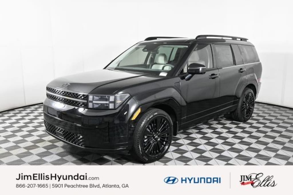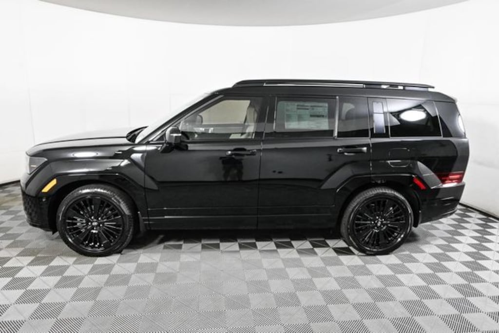 I4. This 2026 Hyundai Santa Fe Hybrid is equipped with Option Group 01, I4, 12 Speakers, 3rd row seats: bench, 4-Wheel Disc Brakes, ABS brakes, Air Conditioning, Alloy wheels, AM/FM radio: SiriusXM, Apple CarPlay & Android Auto, Auto High-beam Headlights, Auto-dimming Rear-View mirror, Automatic temperature control, Brake assist, Bumpers: body-color, Cargo Blocks, Cargo Cover/Screen, Cargo Net, Cargo Tray, Carpeted Floor Mats, Delay-off headlights, Driver door bin, Driver vanity mirror, Dual front impact airbags, Dual front side impact airbags, Electronic Stability Control, Emergency communication system, Exterior Parking Camera Rear, First Aid Kit, Four wheel independent suspension, Front anti-roll bar, Front Bucket Seats, Front Center Armrest, Front dual zone A/C, Front reading lights, Fully automatic headlights, Garage door transmitter: HomeLink, Heads-Up Display, Heated door mirrors, Heated front seats, Heated rear seats, Heated steering wheel, Illuminated entry, Knee airbag, Leather steering wheel, Low tire pressure warning, Memory seat, Mudguards, Navigation System, Occupant sensing airbag, Outside temperature display, Overhead airbag, Overhead console, Panic alarm, Passenger door bin, Passenger vanity mirror, Power door mirrors, Power driver seat, Power Liftgate, Power moonroof, Power passenger seat, Power steering, Power windows, Quilted Premium Nappa Leather Seat Trim, Radio: AM/FM/HD Bose Premium Audio System, Rain sensing wipers, Rear anti-roll bar, Rear side impact airbag, Rear window defroster, Rear window wiper, Remote keyless entry, Roadside Assistance Kit, Security system, Severe Weather Kit, Speed control, Speed-sensing steering, Split folding rear seat, Spoiler, Steering wheel mounted audio controls, Tachometer, Telescoping steering wheel, Tilt steering wheel, Traction control, Trip computer, Turn signal indicator mirrors, Variably intermittent wipers, Ventilated Front AND Rear Seats, Ventilated front seats, and Wheels: 20" x 8.5J Unique Dark Finish Alloy. Not all rebates are compatible with all finance programs. Please see dealer for details and final price. $3000 - Hyundai HMF Dealer Choice : $3000 discount and 5.99% APR for 24 months. $44.32 per $1000 financed. Available to well qualified buyers who finance through Hyundai Motor Finance. H704. Exp. 11/03/2025