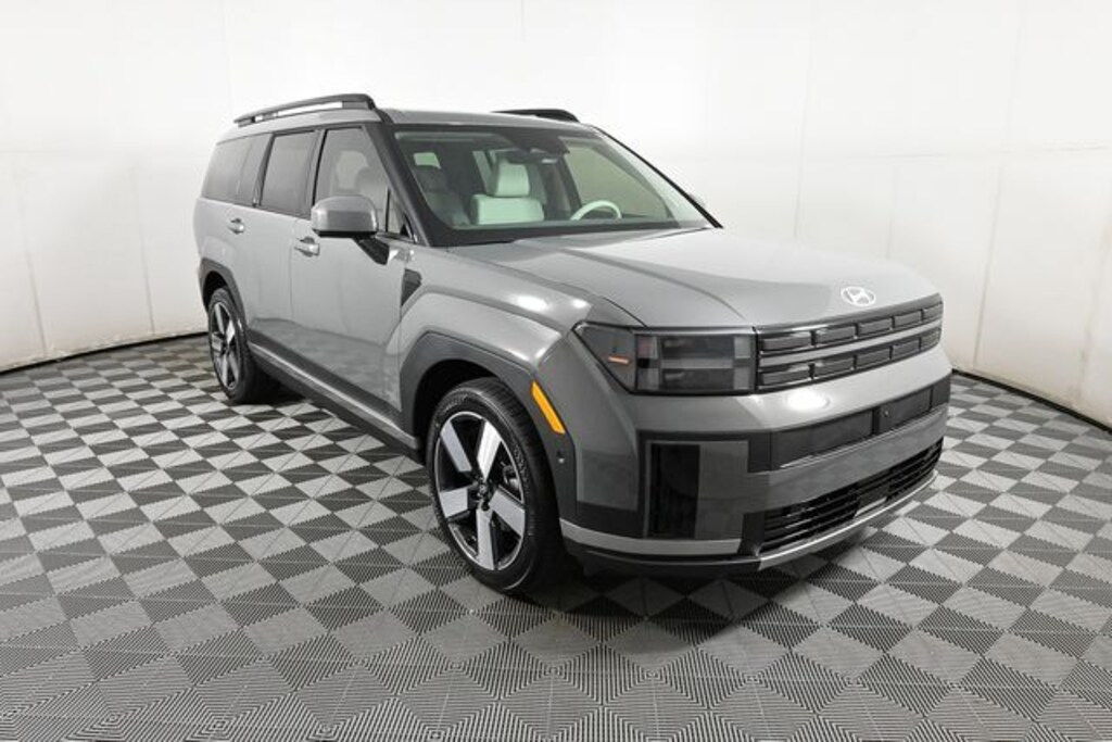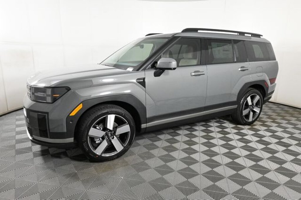 I4. This 2026 Hyundai Santa Fe Hybrid is equipped with Option Group 01, I4, 12 Speakers, 3rd row seats: bench, 4-Wheel Disc Brakes, ABS brakes, Air Conditioning, Alloy wheels, AM/FM radio: SiriusXM, Apple CarPlay & Android Auto, Auto High-beam Headlights, Auto-dimming Rear-View mirror, Automatic temperature control, Brake assist, Bumpers: body-color, Cargo Cover/Screen, Cargo Net, Cargo Tray, Carpeted Floor Mats, Delay-off headlights, Driver door bin, Driver vanity mirror, Dual front impact airbags, Dual front side impact airbags, Electronic Stability Control, Emergency communication system, Exterior Parking Camera Rear, First Aid Kit, Four wheel independent suspension, Front anti-roll bar, Front Bucket Seats, Front Center Armrest, Front dual zone A/C, Front reading lights, Fully automatic headlights, Garage door transmitter: HomeLink, Heated door mirrors, Heated front seats, Heated rear seats, Heated steering wheel, Illuminated entry, Knee airbag, Leather Seat Trim, Leather steering wheel, Low tire pressure warning, Memory seat, Navigation System, Occupant sensing airbag, Outside temperature display, Overhead airbag, Overhead console, Panic alarm, Passenger door bin, Passenger vanity mirror, Power door mirrors, Power driver seat, Power Liftgate, Power moonroof, Power passenger seat, Power steering, Power windows, Radio: AM/FM/HD Bose Premium Audio System, Rain sensing wipers, Rear anti-roll bar, Rear side impact airbag, Rear window defroster, Rear window wiper, Remote keyless entry, Roof Rack Crossbars, Security system, Speed control, Speed-sensing steering, Split folding rear seat, Spoiler, Steering wheel mounted audio controls, Tachometer, Telescoping steering wheel, Tilt steering wheel, Traction control, Trip computer, Turn signal indicator mirrors, Variably intermittent wipers, Ventilated Front AND Rear Seats, Ventilated front seats, and Wheels: 20" x 8.5J Alloy. Not all rebates are compatible with all finance programs. Please see dealer for details and final price. $3000 - Hyundai HMF Dealer Choice : $3000 discount and 5.99% APR for 24 months. $44.32 per $1000 financed. Available to well qualified buyers who finance through Hyundai Motor Finance. H704. Exp. 11/03/2025