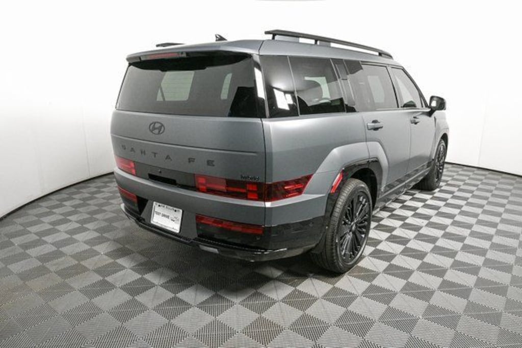 I4. This 2026 Hyundai Santa Fe Hybrid is equipped with Option Group 01, I4, 12 Speakers, 3rd row seats: bench, 4-Wheel Disc Brakes, ABS brakes, Air Conditioning, Alloy wheels, AM/FM radio: SiriusXM, Apple CarPlay & Android Auto, Auto High-beam Headlights, Auto-dimming Rear-View mirror, Automatic temperature control, Brake assist, Bumpers: body-color, Cargo Blocks, Cargo Cover/Screen, Cargo Net, Carpeted Floor Mats, Delay-off headlights, Driver door bin, Driver vanity mirror, Dual front impact airbags, Dual front side impact airbags, Electronic Stability Control, Emergency communication system, Exterior Parking Camera Rear, First Aid Kit, Four wheel independent suspension, Front anti-roll bar, Front Bucket Seats, Front Center Armrest, Front dual zone A/C, Front reading lights, Fully automatic headlights, Garage door transmitter: HomeLink, Heads-Up Display, Heated door mirrors, Heated front seats, Heated rear seats, Heated steering wheel, Illuminated entry, Knee airbag, Leather steering wheel, Low tire pressure warning, Memory seat, Mudguards, Navigation System, Occupant sensing airbag, Outside temperature display, Overhead airbag, Overhead console, Panic alarm, Passenger door bin, Passenger vanity mirror, Power door mirrors, Power driver seat, Power Liftgate, Power moonroof, Power passenger seat, Power steering, Power windows, Quilted Premium Nappa Leather Seat Trim, Radio: AM/FM/HD Bose Premium Audio System, Rain sensing wipers, Rear anti-roll bar, Rear side impact airbag, Rear window defroster, Rear window wiper, Remote keyless entry, Roadside Assistance Kit, Security system, Speed control, Speed-sensing steering, Split folding rear seat, Spoiler, Steering wheel mounted audio controls, Tachometer, Telescoping steering wheel, Tilt steering wheel, Traction control, Trip computer, Turn signal indicator mirrors, Variably intermittent wipers, Ventilated Front AND Rear Seats, Ventilated front seats, and Wheels: 20" x 8.5J Unique Dark Finish Alloy. Not all rebates are compatible with all finance programs. Please see dealer for details and final price. $4250 - Hyundai HMF Dealer Choice : $4250 discount and 5.49% APR for 24 months. $44.09 per $1000 financed. Available to well qualified buyers who finance through Hyundai Motor Finance. H704. Exp. 12/01/2025