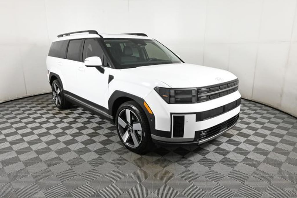 I4. This 2026 Hyundai Santa Fe Hybrid is equipped with Option Group 01, I4, 12 Speakers, 3rd row seats: bench, 4-Wheel Disc Brakes, ABS brakes, Air Conditioning, Alloy wheels, AM/FM radio: SiriusXM, Apple CarPlay & Android Auto, Auto High-beam Headlights, Auto-dimming Rear-View mirror, Automatic temperature control, Brake assist, Bumpers: body-color, Cargo Cover/Screen, Cargo Net, Cargo Tray, Carpeted Floor Mats, Delay-off headlights, Driver door bin, Driver vanity mirror, Dual front impact airbags, Dual front side impact airbags, Electronic Stability Control, Emergency communication system, Exterior Parking Camera Rear, First Aid Kit, Four wheel independent suspension, Front anti-roll bar, Front Bucket Seats, Front Center Armrest, Front dual zone A/C, Front reading lights, Fully automatic headlights, Garage door transmitter: HomeLink, Heated door mirrors, Heated front seats, Heated rear seats, Heated steering wheel, Illuminated entry, Knee airbag, Leather Seat Trim, Leather steering wheel, Low tire pressure warning, Memory seat, Navigation System, Occupant sensing airbag, Outside temperature display, Overhead airbag, Overhead console, Panic alarm, Passenger door bin, Passenger vanity mirror, Power door mirrors, Power driver seat, Power Liftgate, Power moonroof, Power passenger seat, Power steering, Power windows, Radio: AM/FM/HD Bose Premium Audio System, Rain sensing wipers, Rear anti-roll bar, Rear side impact airbag, Rear window defroster, Rear window wiper, Remote keyless entry, Roof Rack Crossbars, Security system, Speed control, Speed-sensing steering, Split folding rear seat, Spoiler, Steering wheel mounted audio controls, Tachometer, Telescoping steering wheel, Tilt steering wheel, Traction control, Transverse Panel, Trip computer, Turn signal indicator mirrors, Variably intermittent wipers, Ventilated Front AND Rear Seats, Ventilated front seats, and Wheels: 20" x 8.5J Alloy. Not all rebates are compatible with all finance programs. Please see dealer for details and final price. $4250 - Hyundai HMF Dealer Choice : $4250 discount and 5.49% APR for 24 months. $44.09 per $1000 financed. Available to well qualified buyers who finance through Hyundai Motor Finance. H704. Exp. 12/01/2025
