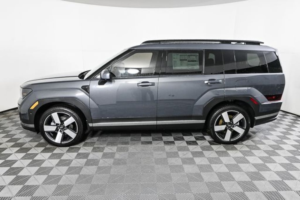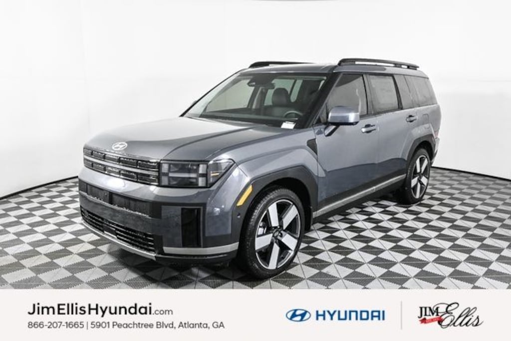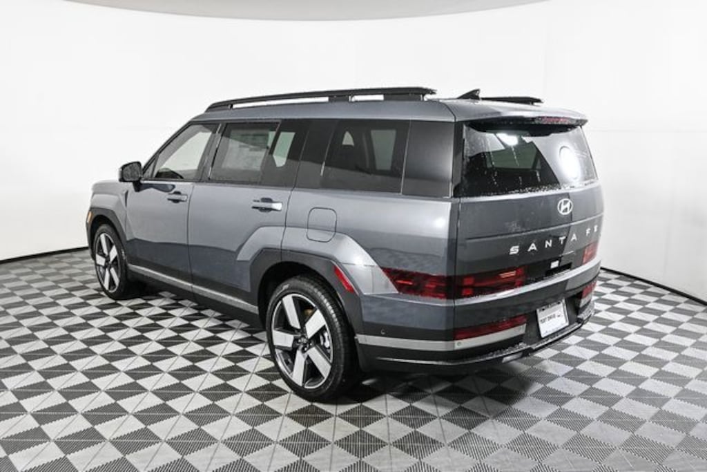 AWD, Black Leather. This 2026 Hyundai Santa Fe is equipped with Option Group 01, AWD, Black Leather, 12 Speakers, 3rd row seats: bench, 4-Wheel Disc Brakes, ABS brakes, Air Conditioning, Alloy wheels, AM/FM radio: SiriusXM, Apple CarPlay & Android Auto, Auto High-beam Headlights, Auto-dimming Rear-View mirror, Automatic temperature control, Brake assist, Bumpers: body-color, Cargo Blocks, Cargo Net, Cargo Tray, Carpeted Floor Mats, Delay-off headlights, Driver door bin, Driver vanity mirror, Dual front impact airbags, Dual front side impact airbags, Electronic Stability Control, Emergency communication system, Exterior Parking Camera Rear, First Aid Kit, Four wheel independent suspension, Front anti-roll bar, Front Bucket Seats, Front Center Armrest, Front dual zone A/C, Front reading lights, Fully automatic headlights, Garage door transmitter: HomeLink, Heated door mirrors, Heated front seats, Heated rear seats, Heated steering wheel, Illuminated entry, Knee airbag, Leather Seat Trim, Leather steering wheel, Low tire pressure warning, Memory seat, Mudguards, Navigation System, Occupant sensing airbag, Outside temperature display, Overhead airbag, Overhead console, Panic alarm, Passenger door bin, Passenger vanity mirror, Power door mirrors, Power driver seat, Power Liftgate, Power moonroof, Power passenger seat, Power steering, Power windows, Radio: AM/FM/HD Bose Premium Audio System, Rain sensing wipers, Rear anti-roll bar, Rear side impact airbag, Rear window defroster, Rear window wiper, Remote keyless entry, Roof Rack Crossbars, Security system, Speed control, Speed-sensing steering, Split folding rear seat, Spoiler, Steering wheel mounted audio controls, Tachometer, Telescoping steering wheel, Tilt steering wheel, Traction control, Trip computer, Turn signal indicator mirrors, Variably intermittent wipers, Ventilated Front AND Rear Seats, Ventilated front seats, and Wheels: 20" x 8.5J Alloy. Not all rebates are compatible with all finance programs. Please see dealer for details and final price. $3500 - Hyundai HMF Dealer Choice : $3500 discount and 5.49% APR for 24 months. $44.09 per $1000 financed. Available to well qualified buyers who finance through Hyundai Motor Finance. H704. Exp. 12/01/2025