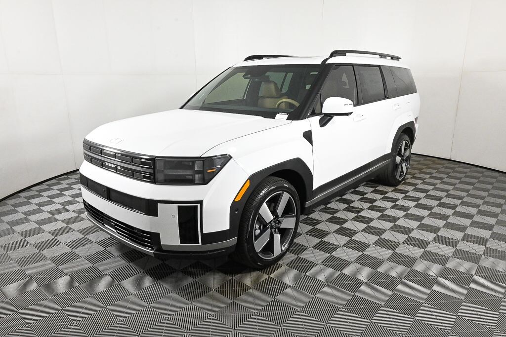 Pecan Brown Leather. This 2026 Hyundai Santa Fe is equipped with 7-Passenger Bench Seating (Option Group 02), Pecan Brown Leather, 12 Speakers, 3rd row seats: bench, 4-Wheel Disc Brakes, ABS brakes, Air Conditioning, All Season Fitted Liners, Alloy wheels, AM/FM radio: SiriusXM, Apple CarPlay & Android Auto, Auto High-beam Headlights, Auto-dimming Rear-View mirror, Automatic temperature control, Brake assist, Bumpers: body-color, Cargo Cover/Screen, Cargo Net, Cargo Organizer, Cargo Tray, Carpeted Floor Mats, Delay-off headlights, Driver door bin, Driver vanity mirror, Dual front impact airbags, Dual front side impact airbags, Electronic Stability Control, Emergency communication system, Exterior Parking Camera Rear, First Aid Kit, Four wheel independent suspension, Front anti-roll bar, Front Bucket Seats, Front Center Armrest, Front dual zone A/C, Front reading lights, Fully automatic headlights, Garage door transmitter: HomeLink, Heated door mirrors, Heated front seats, Heated rear seats, Heated steering wheel, Illuminated entry, Knee airbag, Leather Seat Trim, Leather steering wheel, Low tire pressure warning, Memory seat, Navigation System, Occupant sensing airbag, Outside temperature display, Overhead airbag, Overhead console, Panic alarm, Passenger door bin, Passenger vanity mirror, Power door mirrors, Power driver seat, Power Liftgate, Power moonroof, Power passenger seat, Power steering, Power windows, Radio: AM/FM/HD Bose Premium Audio System, Rain sensing wipers, Rear anti-roll bar, Rear side impact airbag, Rear window defroster, Rear window wiper, Remote keyless entry, Security system, Speed control, Speed-sensing steering, Split folding rear seat, Spoiler, Steering wheel mounted audio controls, Tachometer, Telescoping steering wheel, Tilt steering wheel, Traction control, Trip computer, Turn signal indicator mirrors, Variably intermittent wipers, Ventilated Front AND Rear Seats, Ventilated front seats, and Wheels: 20" x 8.5J Alloy. Not all rebates are compatible with all finance programs. Please see dealer for details and final price. $3500 - Hyundai HMF Dealer Choice : $3500 discount and 5.49% APR for 24 months. $44.09 per $1000 financed. Available to well qualified buyers who finance through Hyundai Motor Finance. H704. Exp. 12/01/2025