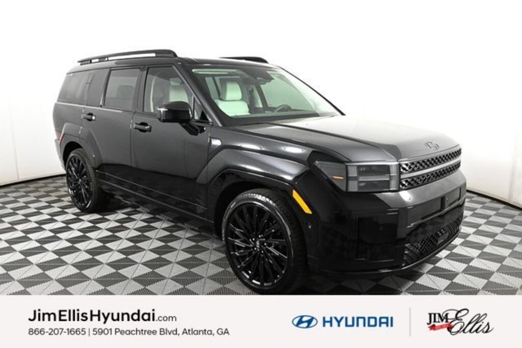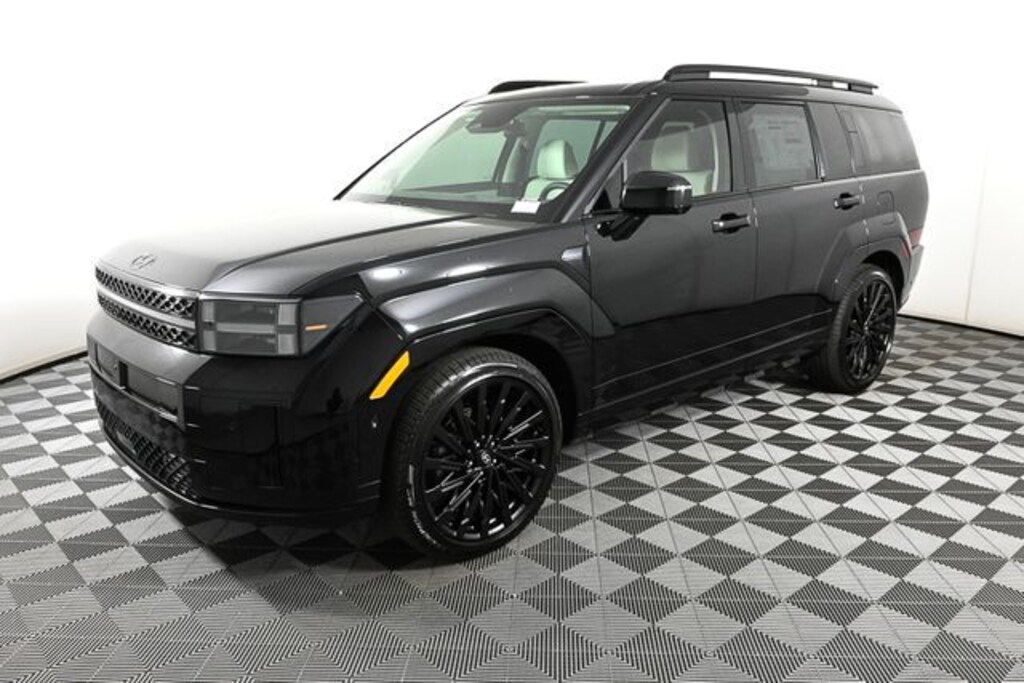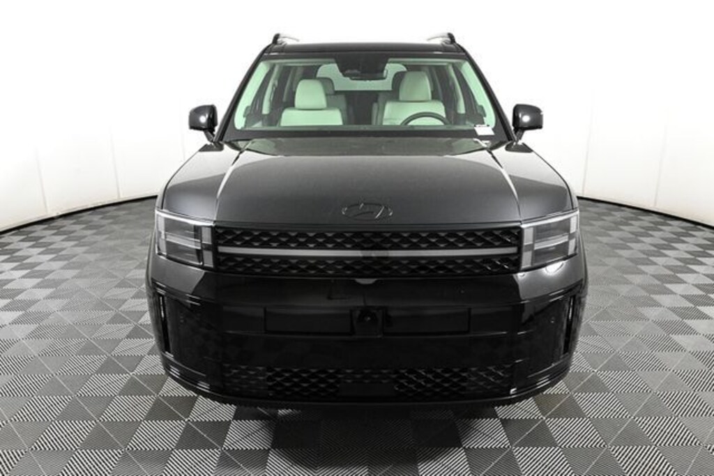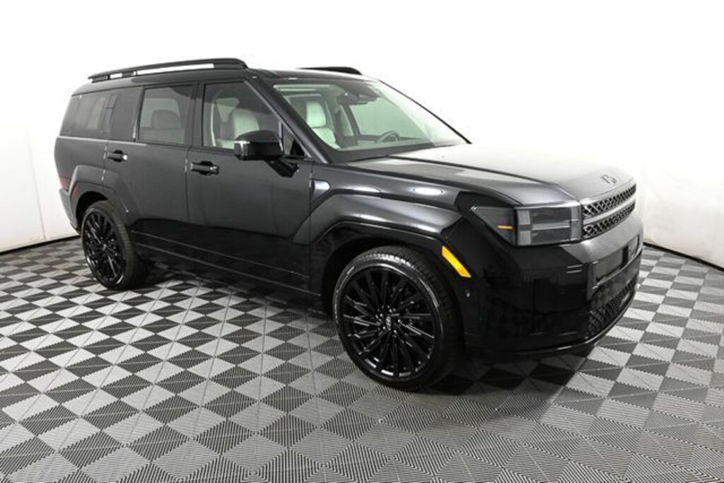 Brown Leather. This 2026 Hyundai Santa Fe is equipped with Brown Leather, 12 Speakers, 3rd row seats: bench, 4-Wheel Disc Brakes, ABS brakes, Air Conditioning, Alloy wheels, AM/FM radio: SiriusXM, Apple CarPlay & Android Auto, Auto High-beam Headlights, Auto-dimming Rear-View mirror, Automatic temperature control, Brake assist, Bumpers: body-color, Cargo Blocks, Cargo Net, Carpeted Floor Mats, Delay-off headlights, Driver door bin, Driver vanity mirror, Dual front impact airbags, Dual front side impact airbags, Electronic Stability Control, Emergency communication system, Exterior Parking Camera Rear, First Aid Kit, Four wheel independent suspension, Front anti-roll bar, Front Bucket Seats, Front Center Armrest, Front dual zone A/C, Front reading lights, Fully automatic headlights, Garage door transmitter: HomeLink, Heads-Up Display, Heated door mirrors, Heated front seats, Heated rear seats, Heated steering wheel, Illuminated entry, Knee airbag, Leather steering wheel, Low tire pressure warning, Memory seat, Navigation System, Occupant sensing airbag, Outside temperature display, Overhead airbag, Overhead console, Panic alarm, Passenger door bin, Passenger vanity mirror, Power door mirrors, Power driver seat, Power Liftgate, Power moonroof, Power passenger seat, Power steering, Power windows, Quilted Premium Nappa Leather Seat Trim, Radio: AM/FM/HD Bose Premium Audio System, Rain sensing wipers, Rear anti-roll bar, Rear side impact airbag, Rear window defroster, Rear window wiper, Remote keyless entry, Security system, Speed control, Speed-sensing steering, Split folding rear seat, Spoiler, Steering wheel mounted audio controls, Tachometer, Telescoping steering wheel, Tilt steering wheel, Traction control, Trip computer, Turn signal indicator mirrors, Variably intermittent wipers, Ventilated Front AND Rear Seats, Ventilated front seats, and Wheels: 21" x 8.5J Unique Dark Finish Alloy. Not all rebates are compatible with all finance programs. Please see dealer for details and final price. $2250 - Hyundai HMF Dealer Choice : $2250 discount and 5.99% APR for 24 months. $44.32 per $1000 financed. Available to well qualified buyers who finance through Hyundai Motor Finance. H704. Exp. 11/03/2025