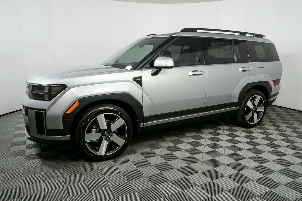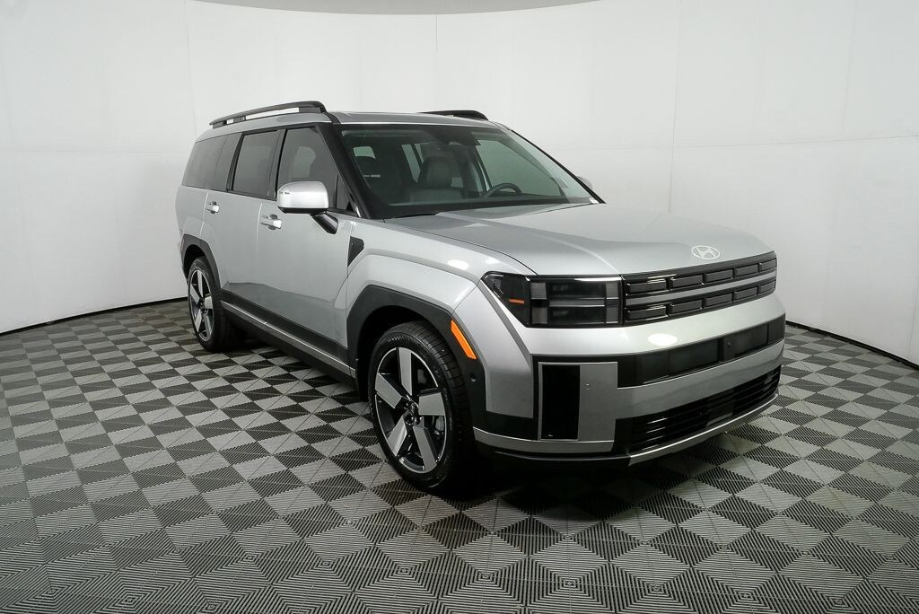 Black Leather. Option Group 01, Black Leather, 12 Speakers, 3rd row seats: bench, 4-Wheel Disc Brakes, ABS brakes, Air Conditioning, Alloy wheels, AM/FM radio: SiriusXM, Apple CarPlay & Android Auto, Auto High-beam Headlights, Auto-dimming Rear-View mirror, Automatic temperature control, Brake assist, Bumpers: body-color, Cargo Cover/Screen, Cargo Net, Carpeted Floor Mats, Delay-off headlights, Driver door bin, Driver vanity mirror, Dual front impact airbags, Dual front side impact airbags, Electronic Stability Control, Emergency communication system, Exterior Parking Camera Rear, First Aid Kit, Four wheel independent suspension, Front anti-roll bar, Front Bucket Seats, Front Center Armrest, Front dual zone A/C, Front reading lights, Fully automatic headlights, Garage door transmitter: HomeLink, Heated and Ventilated Front Bucket Seats, Heated door mirrors, Heated front seats, Heated rear seats, Heated steering wheel, Illuminated entry, Knee airbag, Leather Seat Trim, Leather steering wheel, Low tire pressure warning, Memory seat, Mudguards, Navigation System, Occupant sensing airbag, Outside temperature display, Overhead airbag, Overhead console, Panic alarm, Passenger door bin, Passenger vanity mirror, Power door mirrors, Power driver seat, Power Liftgate, Power moonroof, Power passenger seat, Power steering, Power windows, Radio: AM/FM/HD Bose Premium Audio System, Rain sensing wipers, Rear anti-roll bar, Rear side impact airbag, Rear window defroster, Rear window wiper, Remote keyless entry, Security system, Severe Weather Kit, Speed control, Speed-sensing steering, Split folding rear seat, Spoiler, Steering wheel mounted audio controls, Tachometer, Telescoping steering wheel, Tilt steering wheel, Traction control, Trip computer, Turn signal indicator mirrors, Variably intermittent wipers, Ventilated front seats, and Wheels: 20" x 8.5J Alloy. Not all rebates are compatible with all finance programs. Please see dealer for details and final price. $1500 - Hyundai HMF Dealer Choice : $1500 discount and 5.39% APR for 24 months. $44.05 per $1000 financed. Available to well qualified buyers who finance through Hyundai Motor Finance. H704. Exp. 02/02/2026