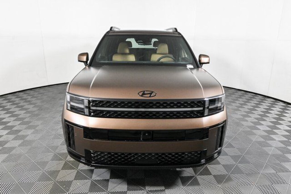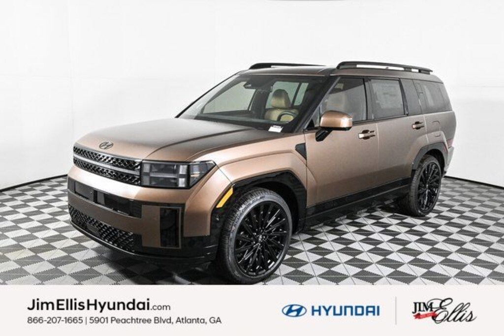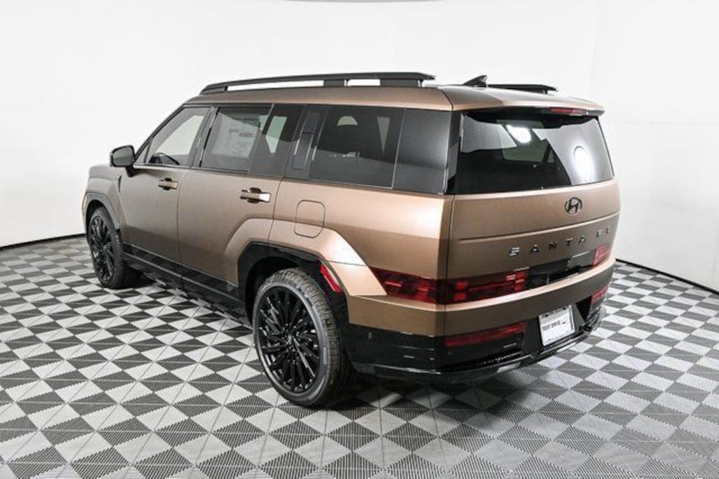Pecan Brown Leather. This 2026 Hyundai Santa Fe is equipped with Option Group 01, Pecan Brown Leather, 12 Speakers, 3rd row seats: bench, 4-Wheel Disc Brakes, ABS brakes, Air Conditioning, All Season Fitted Liners, Alloy wheels, AM/FM radio: SiriusXM, Apple CarPlay & Android Auto, Auto High-beam Headlights, Auto-dimming Rear-View mirror, Automatic temperature control, Brake assist, Bumpers: body-color, Cargo Net, Cargo Tray, Carpeted Floor Mats, Delay-off headlights, Driver door bin, Driver vanity mirror, Dual front impact airbags, Dual front side impact airbags, Electronic Stability Control, Emergency communication system, Exterior Parking Camera Rear, First Aid Kit, Four wheel independent suspension, Front anti-roll bar, Front Bucket Seats, Front Center Armrest, Front dual zone A/C, Front reading lights, Fully automatic headlights, Garage door transmitter: HomeLink, Heads-Up Display, Heated door mirrors, Heated front seats, Heated rear seats, Heated steering wheel, Illuminated entry, Knee airbag, Leather steering wheel, Low tire pressure warning, Memory seat, Navigation System, Occupant sensing airbag, Outside temperature display, Overhead airbag, Overhead console, Panic alarm, Passenger door bin, Passenger vanity mirror, Power door mirrors, Power driver seat, Power Liftgate, Power moonroof, Power passenger seat, Power steering, Power windows, Quilted Premium Nappa Leather Seat Trim, Radio: AM/FM/HD Bose Premium Audio System, Rain sensing wipers, Rear anti-roll bar, Rear side impact airbag, Rear window defroster, Rear window wiper, Remote keyless entry, Roof Rack Crossbars, Security system, Speed control, Speed-sensing steering, Split folding rear seat, Spoiler, Steering wheel mounted audio controls, Tachometer, Telescoping steering wheel, Tilt steering wheel, Traction control, Trip computer, Turn signal indicator mirrors, Variably intermittent wipers, Ventilated Front AND Rear Seats, Ventilated front seats, and Wheels: 21" x 8.5J Unique Dark Finish Alloy. Not all rebates are compatible with all finance programs. Please see dealer for details and final price. $3500 - Hyundai HMF Dealer Choice : $3500 discount and 5.49% APR for 24 months. $44.09 per $1000 financed. Available to well qualified buyers who finance through Hyundai Motor Finance. H704. Exp. 01/02/2026