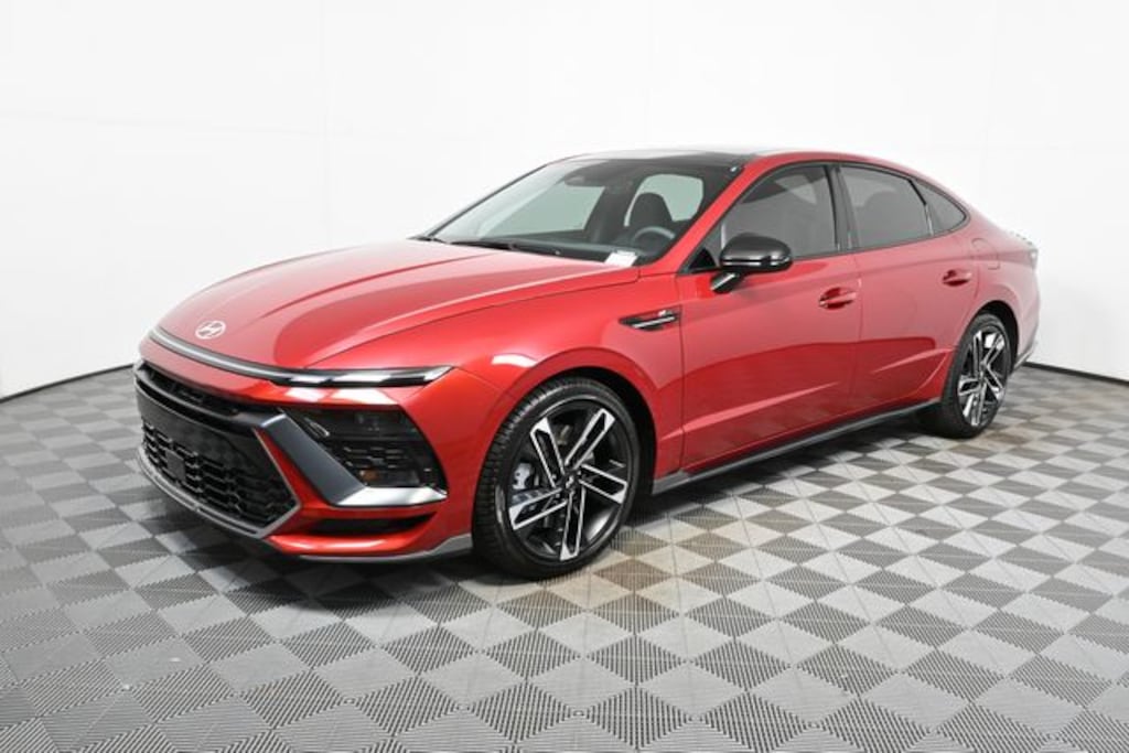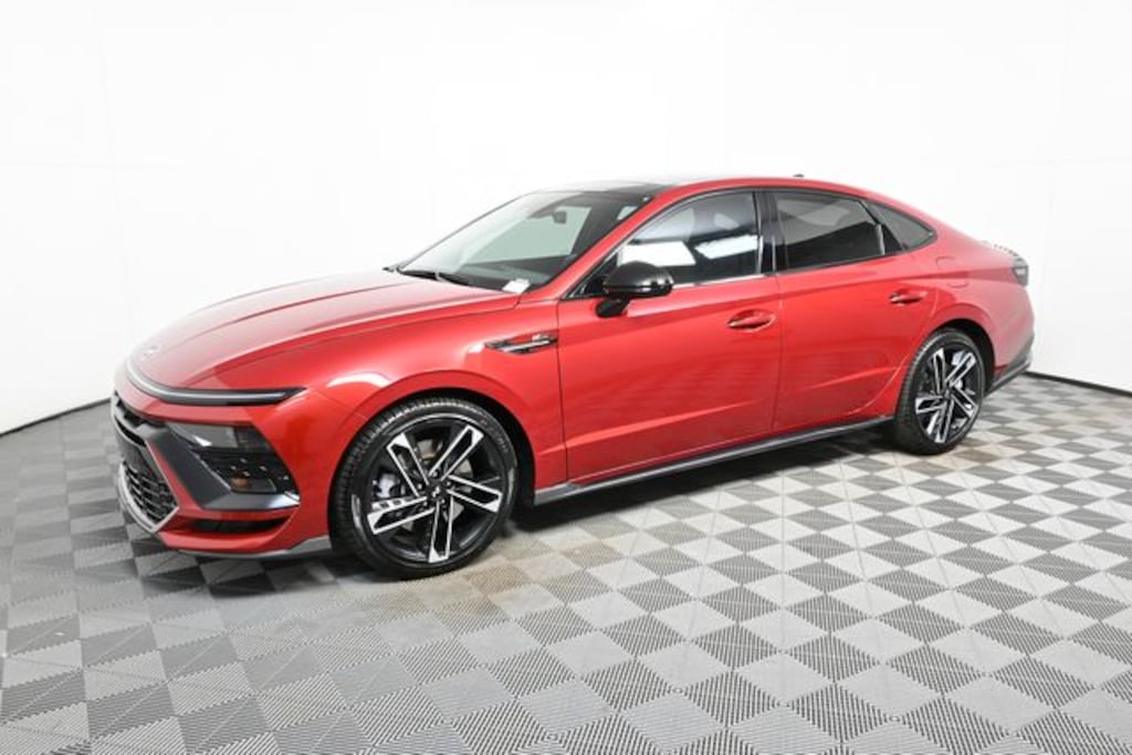 Dark Gray. This 2026 Hyundai Sonata is equipped with Option Group 01, Dark Gray, 12 Speakers, 19" x 8.0J Aluminum Alloy Wheels, 4-Wheel Disc Brakes, ABS brakes, Air Conditioning, Alloy wheels, AM/FM radio: SiriusXM, Apple CarPlay & Android Auto, Auto High-beam Headlights, Auto-dimming Rear-View mirror, Automatic temperature control, Brake assist, Bumpers: body-color, Cargo Block, Cargo Tray, Carpeted Floor Mats, Delay-off headlights, Driver door bin, Driver vanity mirror, Dual front impact airbags, Dual front side impact airbags, Electronic Stability Control, Emergency communication system: Bluelink+, Exterior Parking Camera Rear, First Aid Kit, Four wheel independent suspension, Front anti-roll bar, Front Bucket Seats, Front Center Armrest, Front dual zone A/C, Front reading lights, Fully automatic headlights, Heated door mirrors, Heated front seats, Heated N Unique Sport Seats, Illuminated entry, Knee airbag, Leather steering wheel, Leatherette/Suede Combination Seating Surfaces, Low tire pressure warning, Navigation System, Occupant sensing airbag, Outside temperature display, Overhead airbag, Overhead console, Panic alarm, Passenger door bin, Passenger vanity mirror, Power door mirrors, Power driver seat, Power moonroof, Power steering, Power windows, Radio data system, Radio: AM/FM/HD/MP3/SiriusXM/Navigation, Rear anti-roll bar, Rear seat center armrest, Rear side impact airbag, Rear window defroster, Remote keyless entry, Security system, Speed control, Speed-sensing steering, Speed-Sensitive Wipers, Split folding rear seat, Spoiler, Sport steering wheel, Steering wheel mounted audio controls, Tachometer, Telescoping steering wheel, Tilt steering wheel, Traction control, Trip computer, and Variably intermittent wipers. Not all rebates are compatible with all finance programs. Please see dealer for details and final price. $250 - Hyundai HMF Dealer Choice : $250 discount and 5.49% APR for 24 months. $44.09 per $1000 financed. Available to well qualified buyers who finance through Hyundai Motor Finance. H704. Exp. 12/01/2025