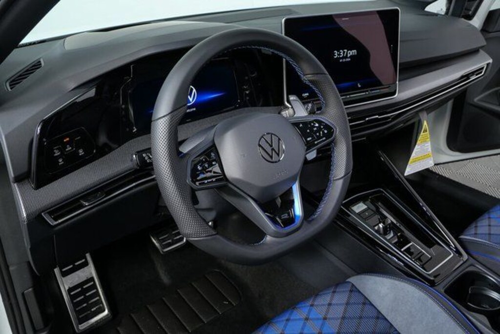 Blind Spot Monitor, Cross-Traffic Alert, Lane Keeping Assist, Electronic Stability Control, Brake Assist, 4-Wheel ABS, Tire Pressure Monitoring System, 4-Wheel Disc Brakes Volkswagen Golf R with Pure White exterior and Blue/Soul Black w/ Diamond Pattern Inserts interior features a 4 Cylinder Engine with 328 HP at 5600 Rpm*.