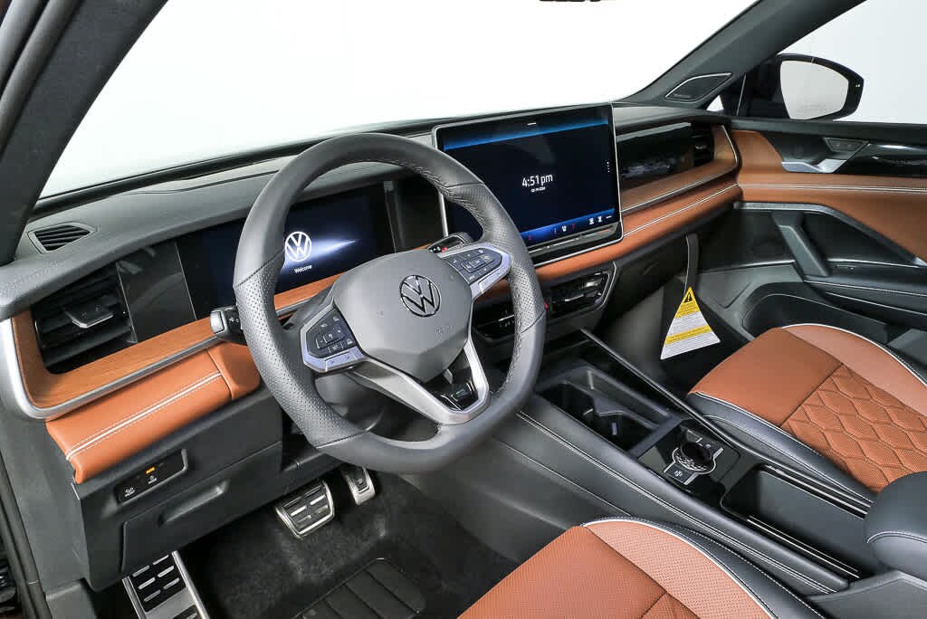 Blind Spot Monitor, Lane Keeping Assist, Cross-Traffic Alert, Child Safety Locks, Electronic Stability Control, Brake Assist, 4-Wheel ABS, 4-Wheel Disc Brakes, Tire Pressure Monitoring System Volkswagen SEL R-Line Turbo with Deep Black Pearl exterior and Amber Brown interior features a 4 Cylinder Engine with 268 HP at 5000 Rpm*.