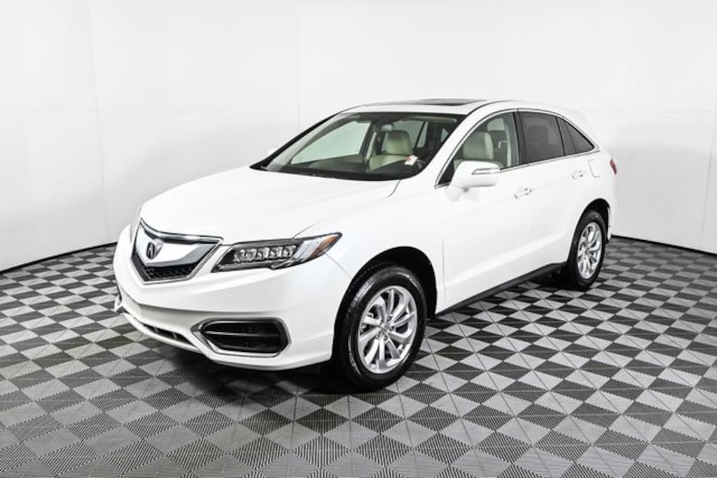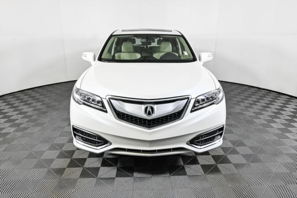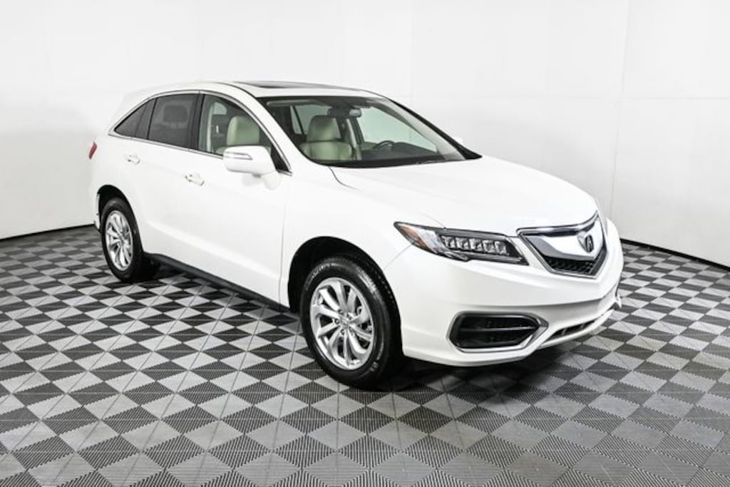 This 2018 Acura RDX is equipped with 4D Sport Utility, 3.5L V6 SOHC i-VTEC 24V, FWD, White Diamond Pearl, Ebony w/Leatherette-Trimmed Interior, 18" x 7.5" Aluminum Alloy Wheels, 4-Wheel Disc Brakes, 4.25 Axle Ratio, 7 Speakers, ABS brakes, Air Conditioning, Alloy wheels, AM/FM radio: SiriusXM, Anti-whiplash front head restraints, Auto-dimming Rear-View mirror, Automatic temperature control, Brake assist, Bumpers: body-color, CD player, Delay-off headlights, Driver door bin, Driver vanity mirror, Dual front impact airbags, Dual front side impact airbags, Electronic Stability Control, Exterior Parking Camera Rear, Four wheel independent suspension, Front anti-roll bar, Front Bucket Seats, Front Center Armrest, Front dual zone A/C, Front reading lights, Fully automatic headlights, Garage door transmitter: HomeLink, Heated door mirrors, Heated front seats, Heated Front Sport Bucket Seats, Illuminated entry, Leather Shift Knob, Leather steering wheel, Leatherette-Trimmed Interior, Low tire pressure warning, Memory seat, Occupant sensing airbag, Outside temperature display, Overhead airbag, Overhead console, Panic alarm, Passenger door bin, Passenger vanity mirror, Power door mirrors, Power driver seat, Power Liftgate, Power moonroof, Power passenger seat, Power steering, Power windows, Radio data system, Radio: Acura Premium Audio System, Rear anti-roll bar, Rear seat center armrest, Rear window defroster, Rear window wiper, Remote keyless entry, Security system, Speed control, Speed-sensing steering, Speed-Sensitive Wipers, Split folding rear seat, Spoiler, Steering wheel mounted audio controls, Tachometer, Telescoping steering wheel, Tilt steering wheel, Traction control, Trip computer, Turn signal indicator mirrors, and Variably intermittent wipers.
