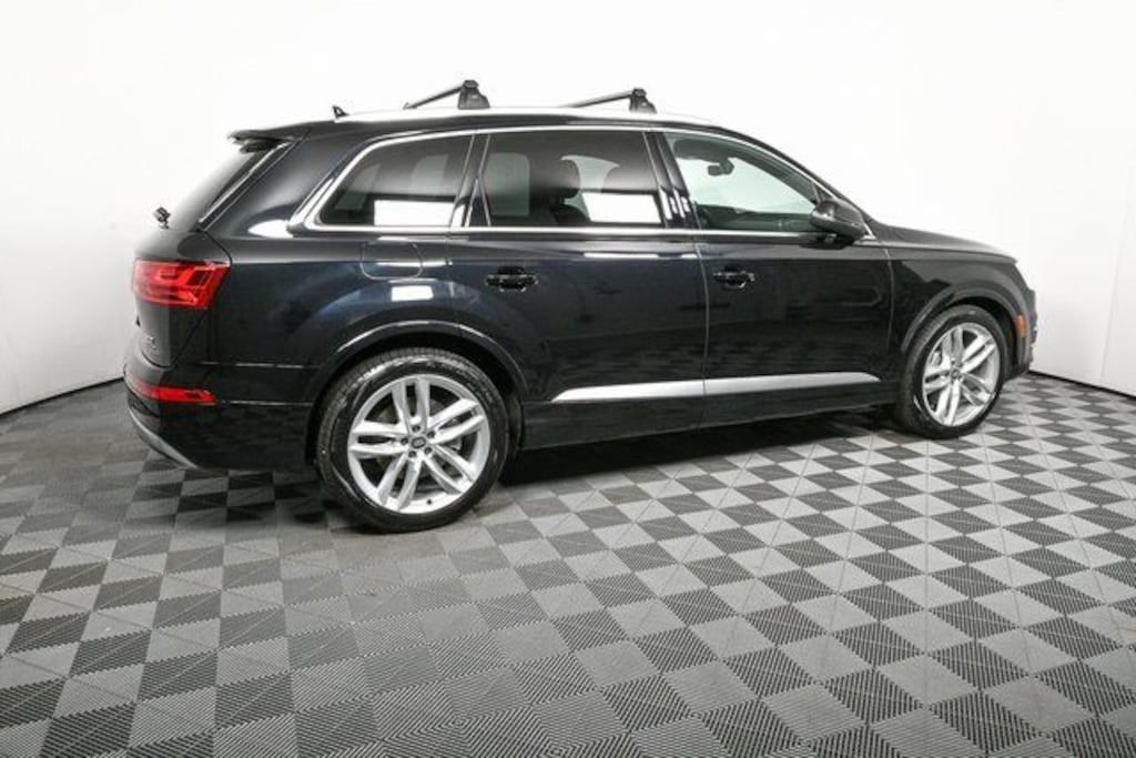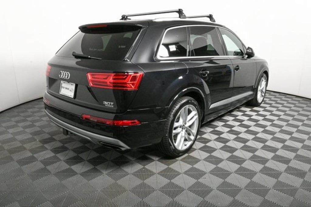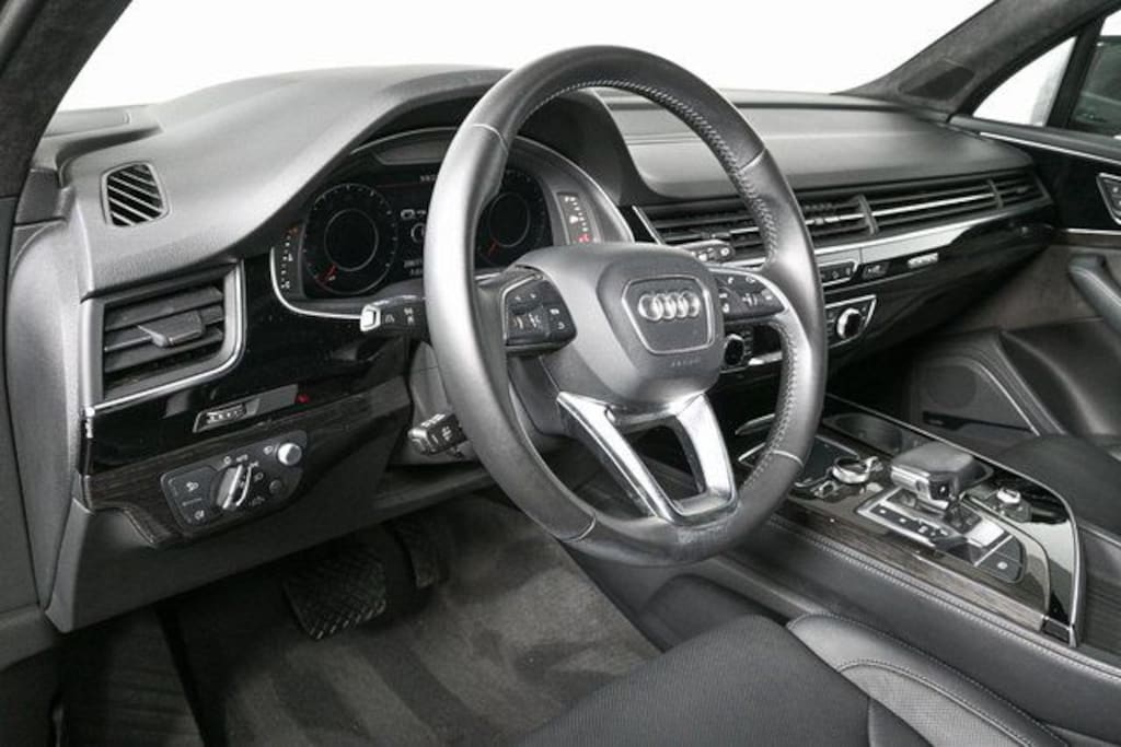 This 2017 Audi Q7 is equipped with Q7 3.0T Prestige quattro, 4D Sport Utility, 3.0L TFSI V6 DOHC, quattro, Orca Black Metallic, Black w/Leather Seating Surfaces or Valcona Leather Seat Trim, 10 Speakers, 3.204 Axle Ratio, 3rd row seats: bench, 4-Wheel Disc Brakes, ABS brakes, Air Conditioning, Alloy wheels, AM/FM radio: SiriusXM, Auto-dimming Rear-View mirror, Automatic temperature control, Brake assist, Bumpers: body-color, CD player, Compass, Delay-off headlights, Driver door bin, Driver vanity mirror, Driver's Seat Mounted Armrest, Dual front impact airbags, Dual front side impact airbags, Electronic Stability Control, Exterior Parking Camera Rear, Four wheel independent suspension, Front anti-roll bar, Front Bucket Seats, Front dual zone A/C, Front fog lights, Front reading lights, Fully automatic headlights, Garage door transmitter: HomeLink, Heated door mirrors, Heated Front Bucket Seats, Heated front seats, High intensity discharge headlights: Xenon plus, Illuminated entry, Leather Seating Surfaces, Leather Shift Knob, Leather steering wheel, Low tire pressure warning, Memory seat, Occupant sensing airbag, Outside temperature display, Overhead airbag, Panic alarm, Passenger door bin, Passenger seat mounted armrest, Passenger vanity mirror, Power door mirrors, Power driver seat, Power Liftgate, Power moonroof, Power passenger seat, Power steering, Power windows, Radio data system, Radio: MMI Radio Plus w/Audi Sound System, Rain sensing wipers, Rear air conditioning, Rear anti-roll bar, Rear fog lights, Rear reading lights, Rear seat center armrest, Rear window defroster, Rear window wiper, Remote keyless entry, Roof rack: rails only, Security system, Speed control, Speed-sensing steering, Split folding rear seat, Spoiler, Steering wheel mounted audio controls, Tachometer, Telescoping steering wheel, Tilt steering wheel, Traction control, Trip computer, Turn signal indicator mirrors, Variably intermittent wipers, and Wheels: 19" 5-V-Spoke Design.