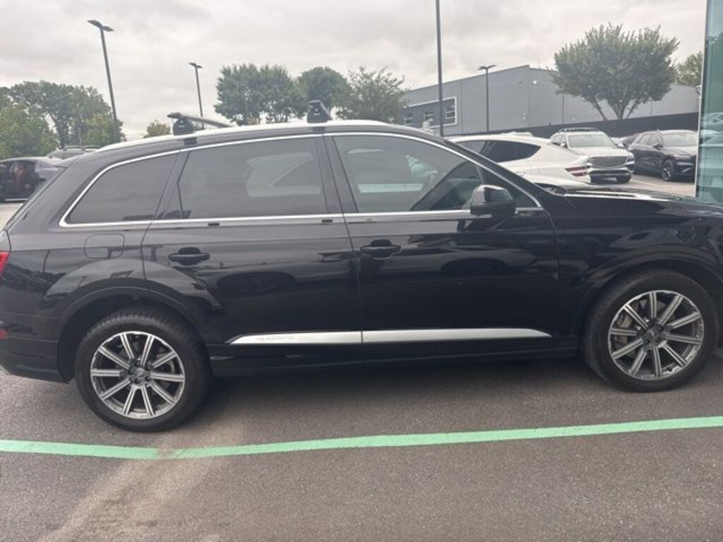 This 2018 Audi Q7 is equipped with Q7 3.0T Premium quattro, 4D Sport Utility, 3.0L TFSI V6 DOHC, quattro, Black w/Leather Seating Surfaces, 10 Speakers, 3.204 Axle Ratio, 3rd row seats: bench, 4-Wheel Disc Brakes, ABS brakes, Air Conditioning, Alloy wheels, AM/FM radio: SiriusXM, Auto-dimming Rear-View mirror, Automatic temperature control, Brake assist, Bumpers: body-color, CD player, Compass, Delay-off headlights, Driver door bin, Driver vanity mirror, Driver's Seat Mounted Armrest, Dual front impact airbags, Dual front side impact airbags, Electronic Stability Control, Exterior Parking Camera Rear, Four wheel independent suspension, Front anti-roll bar, Front Bucket Seats, Front dual zone A/C, Front fog lights, Front reading lights, Fully automatic headlights, Garage door transmitter: HomeLink, Heated door mirrors, Heated Front Bucket Seats, Heated front seats, High intensity discharge headlights: Xenon plus, Illuminated entry, Leather Seating Surfaces, Leather Shift Knob, Leather steering wheel, Low tire pressure warning, Memory seat, Occupant sensing airbag, Outside temperature display, Overhead airbag, Panic alarm, Passenger door bin, Passenger seat mounted armrest, Passenger vanity mirror, Power door mirrors, Power driver seat, Power Liftgate, Power moonroof, Power passenger seat, Power steering, Power windows, Radio data system, Radio: MMI Radio Plus w/Audi Sound System, Rain sensing wipers, Rear air conditioning, Rear anti-roll bar, Rear fog lights, Rear reading lights, Rear seat center armrest, Rear window defroster, Rear window wiper, Remote keyless entry, Roof rack: rails only, Security system, Speed control, Speed-sensing steering, Split folding rear seat, Spoiler, Steering wheel mounted audio controls, Tachometer, Telescoping steering wheel, Tilt steering wheel, Traction control, Trip computer, Turn signal indicator mirrors, Variably intermittent wipers, and Wheels: 19" 5-V-Spoke Design.