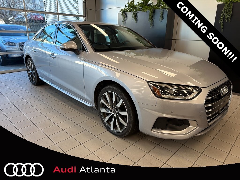 The 2021 Audi A4 Sedan 40 TFSI quattro in Florett Silver Metallic with Rock Gray leather and Granite Gray stitching delivers a refined balance of sporty performance, advanced driver assistance, and modern Audi technology, enhanced by the Premium Plus package and upscale interior details.