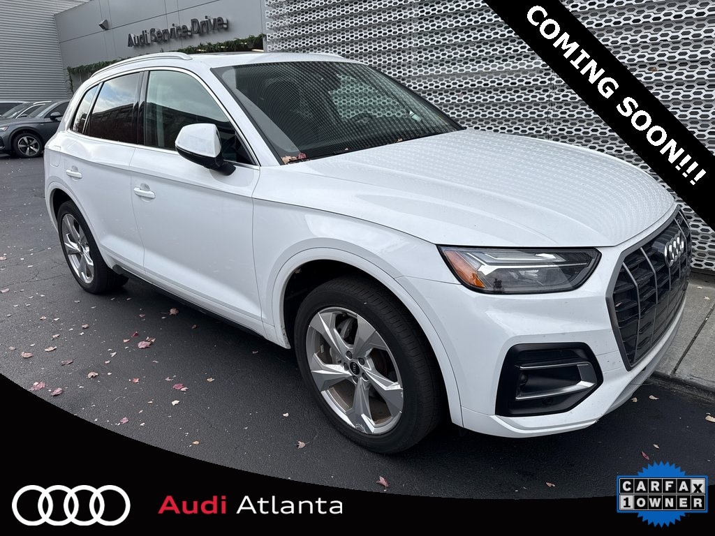 The 2021 Audi Q5 45 TFSI quattro in Ibis White pairs a refined exterior with a Black leather interior accented by Rock Gray stitching, offering a premium blend of technology, comfort, and capability. With the Premium Plus package, Navigation package, and upgraded wheels, this Q5 delivers elevated convenience, advanced safety features, and a more dynamic look.