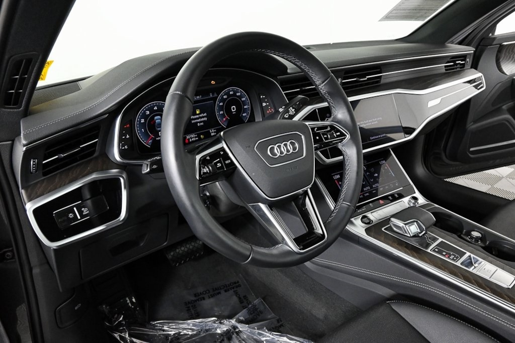 The 2022 Audi A6 55 TFSI quattro in Daytona Gray Pearl Effect with Black leather offers a refined balance of performance, luxury, and technology. Powered by a 3.0L TFSI V6 engine paired with a 7-speed S tronic transmission and quattro all-wheel drive, it delivers both dynamic handling and confident traction. The Premium Plus package adds advanced driver assistance, premium audio, and top-tier convenience features, while the Executive package enhances comfort with ventilated front seats, heated rear seats, and upgraded climate control. The Black Optic Sport package sharpens the exterior with high-gloss black elements and sport suspension, complementing its sophisticated look. This A6 combines a luxurious interior, advanced infotainment, and precision engineering in a sleek executive sedan.