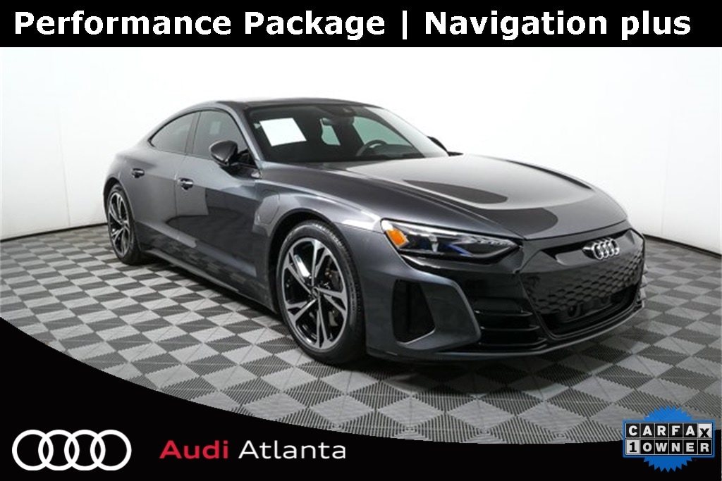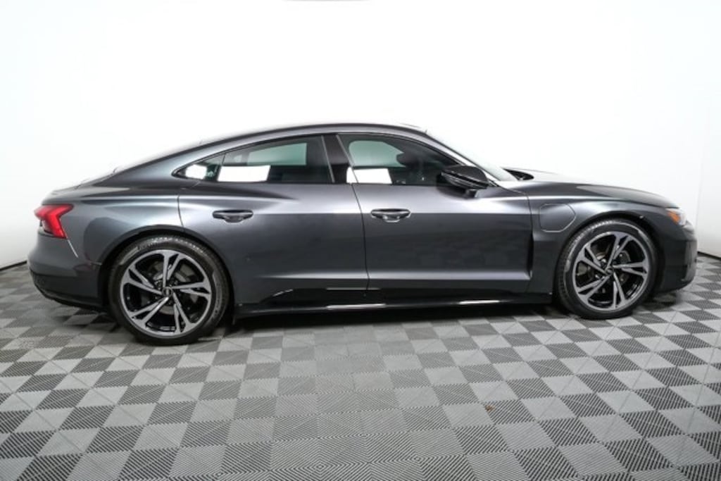2022 Audi e-tron GT quattro in Daytona Gray Pearl Effect is a high-performance electric sedan that combines dynamic driving with cutting-edge technology. Its dual synchronous electric motors and quattro® all-wheel drive deliver instant torque and precise handling, while the adaptive air suspension ensures a smooth, controlled ride. Inside, the cabin is driver-focused, with leather and Alcantara surfaces, a 12.3" Audi virtual cockpit plus, and a panoramic fixed glass roof for a luxurious feel. The Performance package adds laser headlights, rear-wheel steering, and matte carbon atlas inlays for a sportier edge. Advanced safety systems and driver assistance features make it both thrilling and secure.