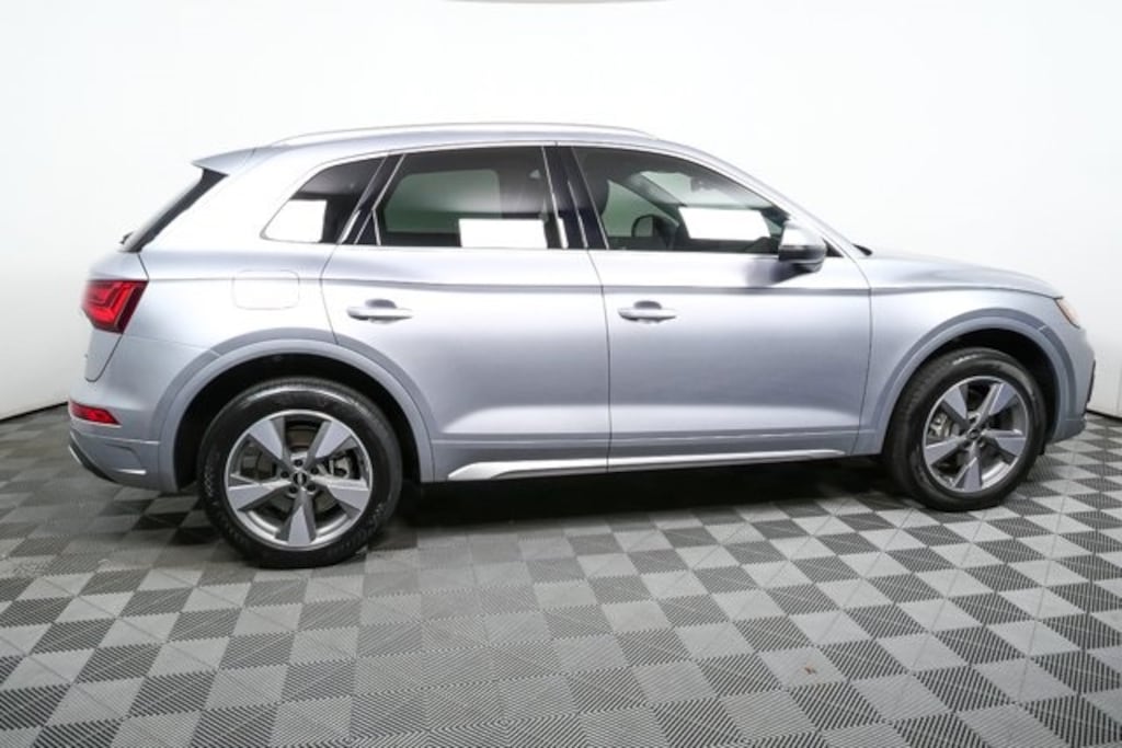 The 2023 Audi Q5 40 TFSI quattro in Florett Silver Metallic pairs its clean, modern exterior with a Black interior accented by Rock Gray stitching for a subtle two-tone contrast. Equipped with the Premium Plus package, this Q5 enhances everyday driving with upgraded tech, comfort, and safety, while offering strong capability from its turbocharged engine and quattro all-wheel drive.
