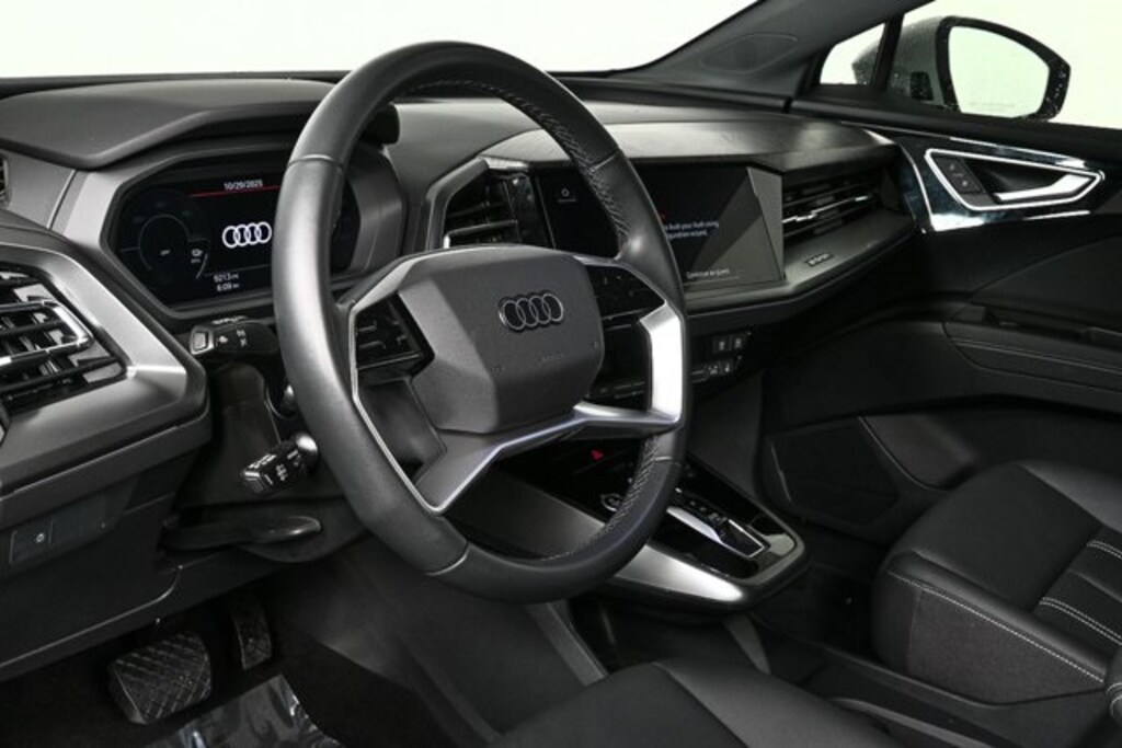 The 2024 Audi Q4 55 e-tron quattro in Glacier White Metallic with Black Leather combines cutting-edge electric performance with Audi’s signature luxury and design. Powered by dual electric motors and an 82 kWh battery, it delivers confident all-wheel-drive traction, instant torque, and an EPA-estimated range of up to 258 miles. Inside, the Q4 offers a high-tech, driver-focused cabin with premium materials, advanced digital displays, and a serene driving experience enhanced by adaptive safety and comfort features.