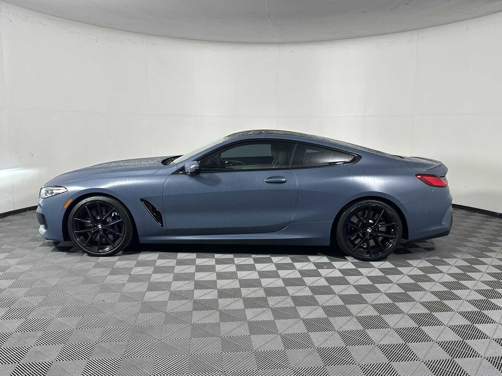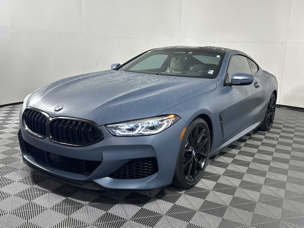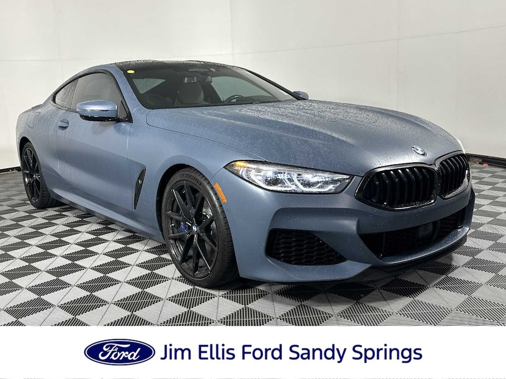 Navigation, All Wheel Drive, Quad Bucket Seats, Power Liftgate, Heated Driver Seat, Cooled Driver Seat, Turbocharged, Satellite Radio, iPod/MP3 Input, Onboard Communications System Rear Spoiler, MP3 Player, Remote Trunk Release, Keyless Entry. Non-Smoker vehicle BMW M850i xDrive with Frozen Barcelona Blue Metallic exterior and Ivory White/Night Blue interior features a 8 Cylinder Engine with 523 HP at 5500 RPM*.