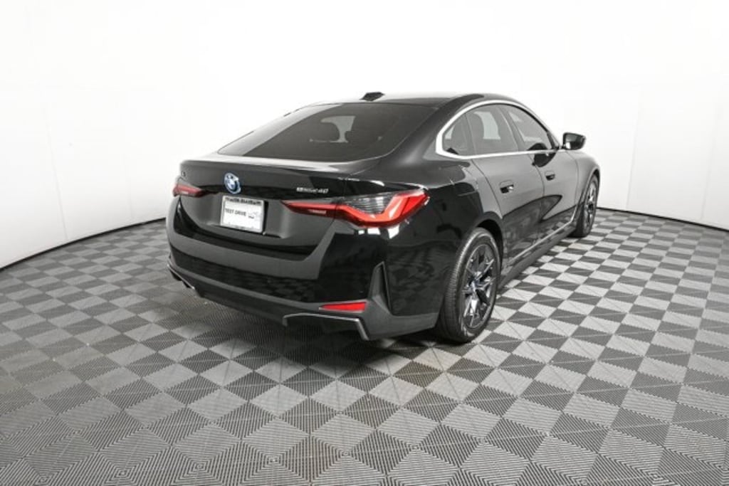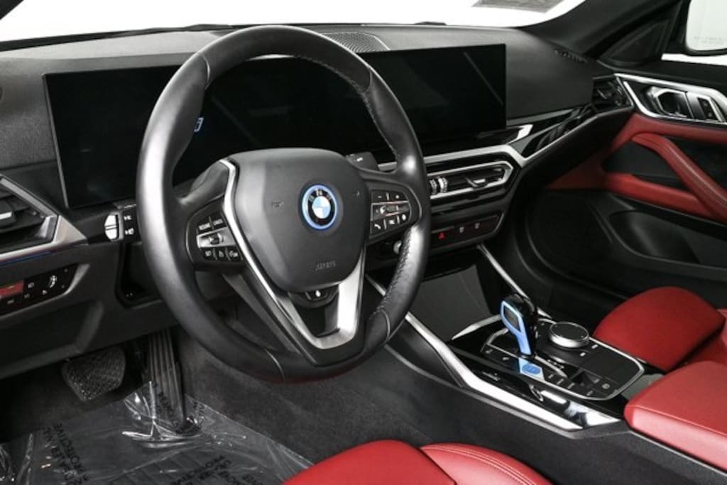 The 2023 BMW i4 eDrive40 in Jet Black with Tacora Red perforated Sensatec interior is a sleek all-electric Gran Coupe that blends dynamic performance with modern luxury. Powered by BMW’s 5th-generation electric motor and supported by advanced driver assistance systems, the i4 delivers a refined balance of efficiency, technology, and comfort with an unmistakably sporty design.