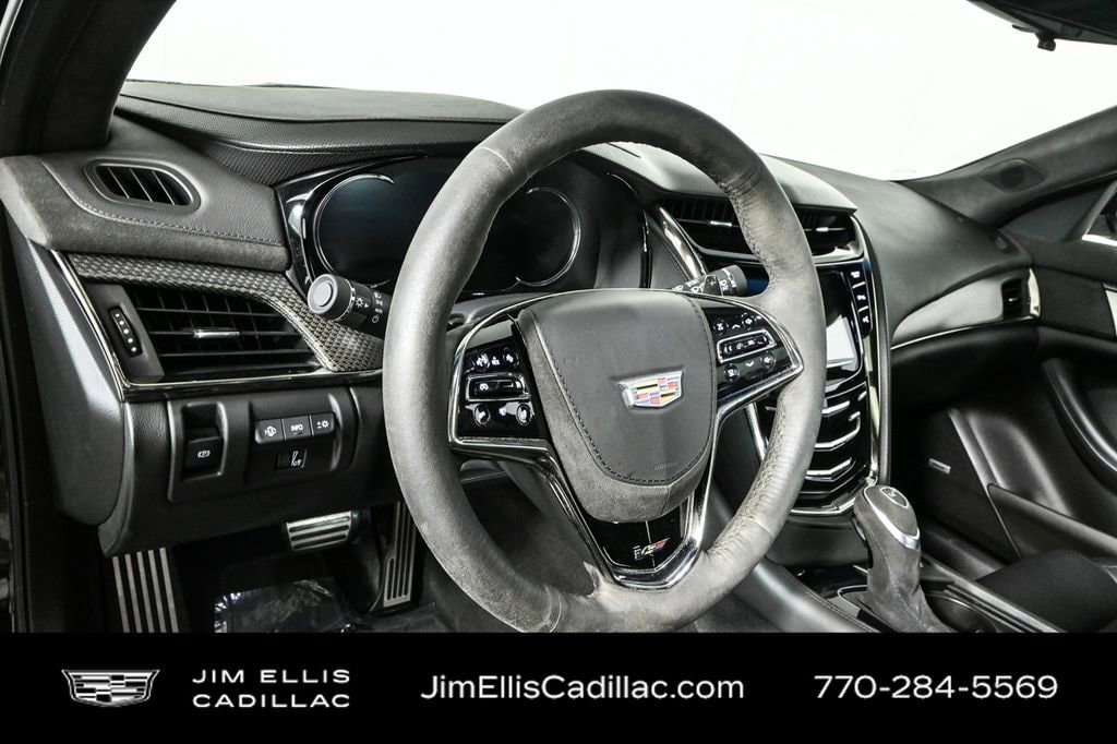 The exterior of this CTS-V commands attention with its sleek, aerodynamic design and striking Black paint. The Carbon Fiber Package adds a touch of exclusivity, with carbon fiber accents that not only enhance the visual appeal but also contribute to the vehicle's overall performance.