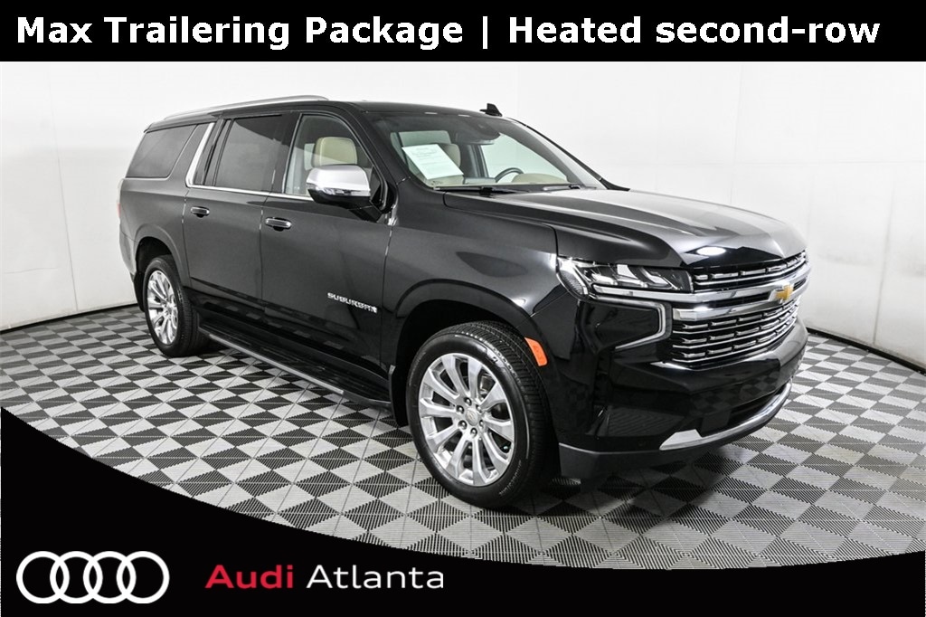 The 2023 Chevrolet Suburban 4WD Premier in Black with Jet Black on Maple Sugar leather is a full-size luxury SUV that blends capability, technology, and refinement. Powered by a 6.2L EcoTec3 V8 paired with a 10-speed automatic transmission, it offers smooth yet commanding performance. The Premier trim brings a premium interior with heated and ventilated front seats, heated second-row bucket seats, and a panoramic sunroof, while advanced towing features, Magnetic Ride Control, and a Max Trailering Package ensure it's ready for serious work. Technology highlights include a Bose 10-speaker audio system, wireless charging, and an extensive suite of driver-assist features for comfort and safety.