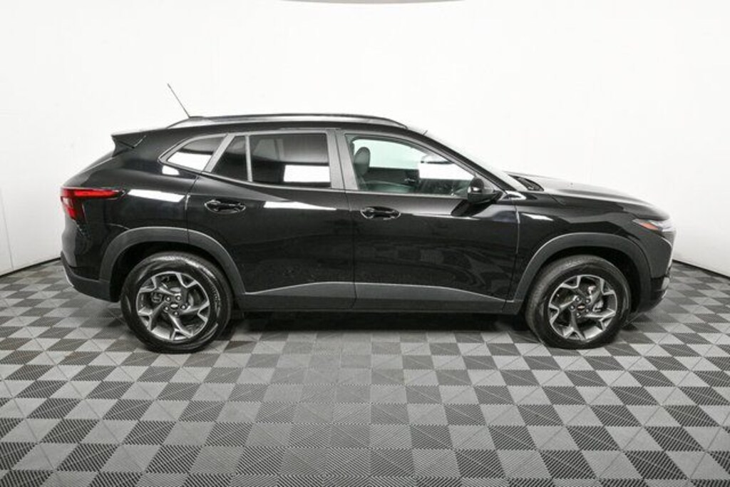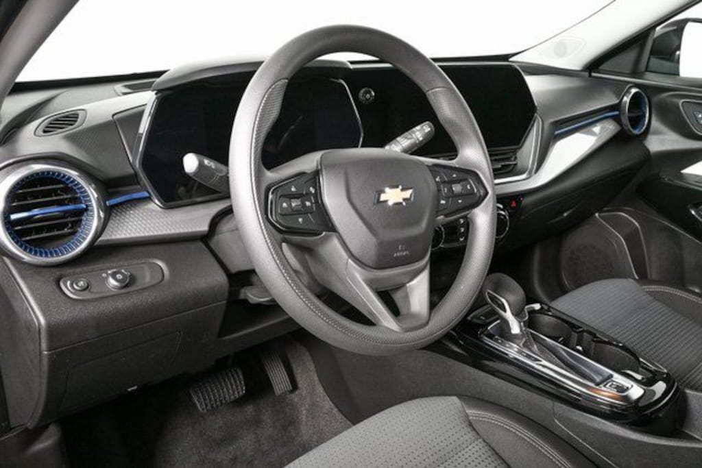 This 2024 Chevrolet Trax is equipped with Preferred Equipment Group 1LT, Trax LT, 4D Sport Utility, 1.2L Ecotec Turbo DOHC DI w/VVT, FWD, Mosaic Black Metallic, Jet Black w/Blue Accents w/Cloth/Evotex Seat Trim, 2-Way Adjustable Front Head Restraints, 3.50 Final Drive Axle Ratio, 4-Way Manual Front Passenger Seat Adjuster, 4-Wheel Disc Brakes, 6 Speakers, 6-Speaker Audio System Feature, 6-Way Manual Driver Seat Adjuster, ABS brakes, Air Conditioning, Alloy wheels, AM/FM radio: SiriusXM, Auto High-beam Headlights, Automatic temperature control, Brake assist, Bumpers: body-color, Cloth/Evotex Seat Trim, Compass, Delay-off headlights, Driver door bin, Driver vanity mirror, Dual front impact airbags, Dual front side impact airbags, Electronic Stability Control, Emergency communication system: OnStar and Chevrolet connected services capable, Exterior Parking Camera Rear, Front anti-roll bar, Front Bucket Seats, Front Center Armrest, Front reading lights, Front wheel independent suspension, Fully automatic headlights, Illuminated entry, Low tire pressure warning, Occupant sensing airbag, Outside temperature display, Overhead airbag, Overhead console, Panic alarm, Passenger door bin, Passenger vanity mirror, Power door mirrors, Power steering, Power windows, Premium audio system: Chevrolet Infotainment 3, Radio data system, Radio: Audio System w/AM/FM, Rear window defroster, Rear window wiper, Remote keyless entry, Security system, SiriusXM, Speed control, Split folding rear seat, Spoiler, Steering wheel mounted audio controls, Tachometer, Telescoping steering wheel, Tilt steering wheel, Traction control, Trip computer, Variably intermittent wipers, and Wheels: 17" Gray-Painted Machined Aluminum.