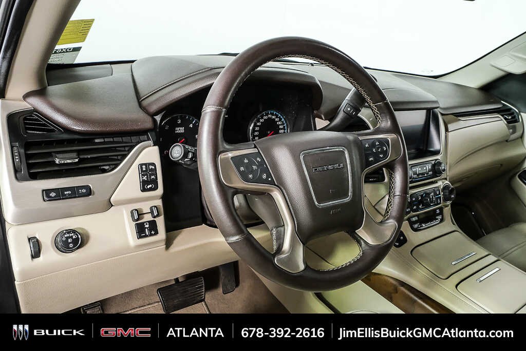 Leather Seats, Third Row Seat, Quad Bucket Seats, Power Liftgate, Rear Air, Heated Driver Seat, Heated Rear Seat, Cooled Driver Seat, Back-Up Camera, Premium Sound System Keyless Entry, Privacy Glass, Remote Trunk Release, Steering Wheel Controls. GMC Denali with Satin Steel Metallic exterior and Cocoa/Shale interior features a 8 Cylinder Engine with 420 HP at 5600 RPM*.