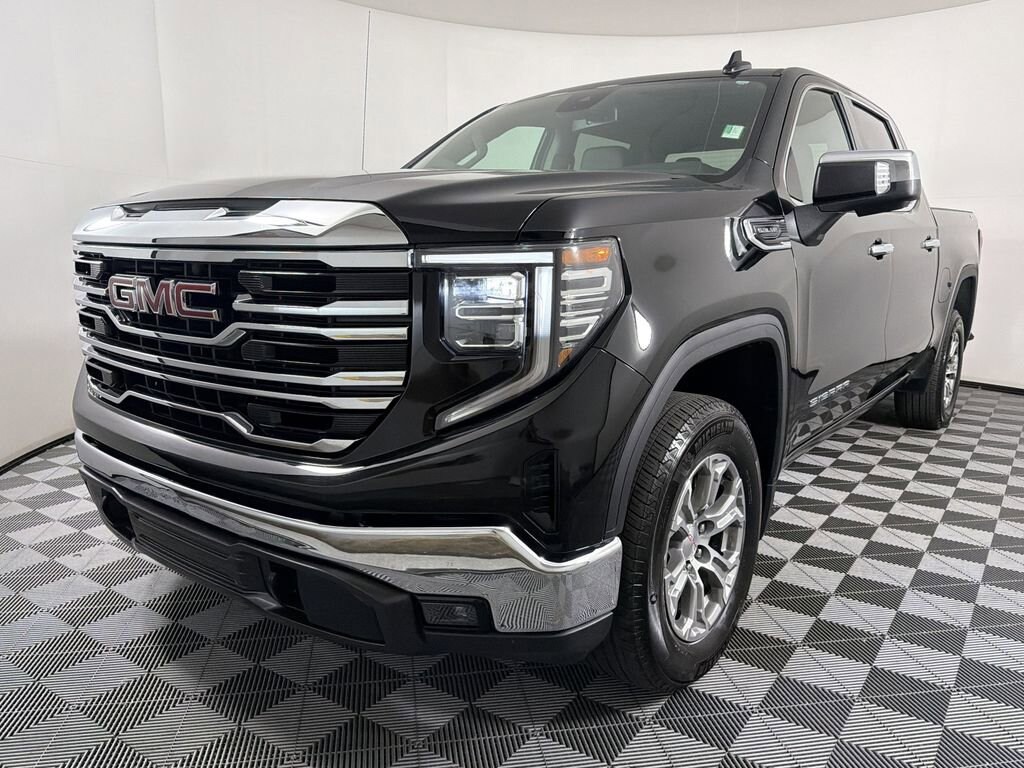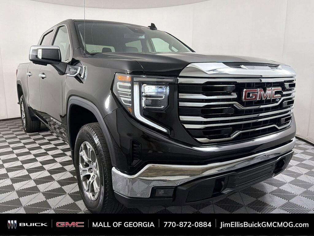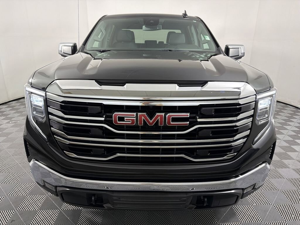 CARFAX One-Owner. Onyx Black 2024 GMC Sierra 1500 SLT 4WD 10-Speed Automatic EcoTec3 5.3L V8 10-Speed Automatic, 4WD, Black Leather.