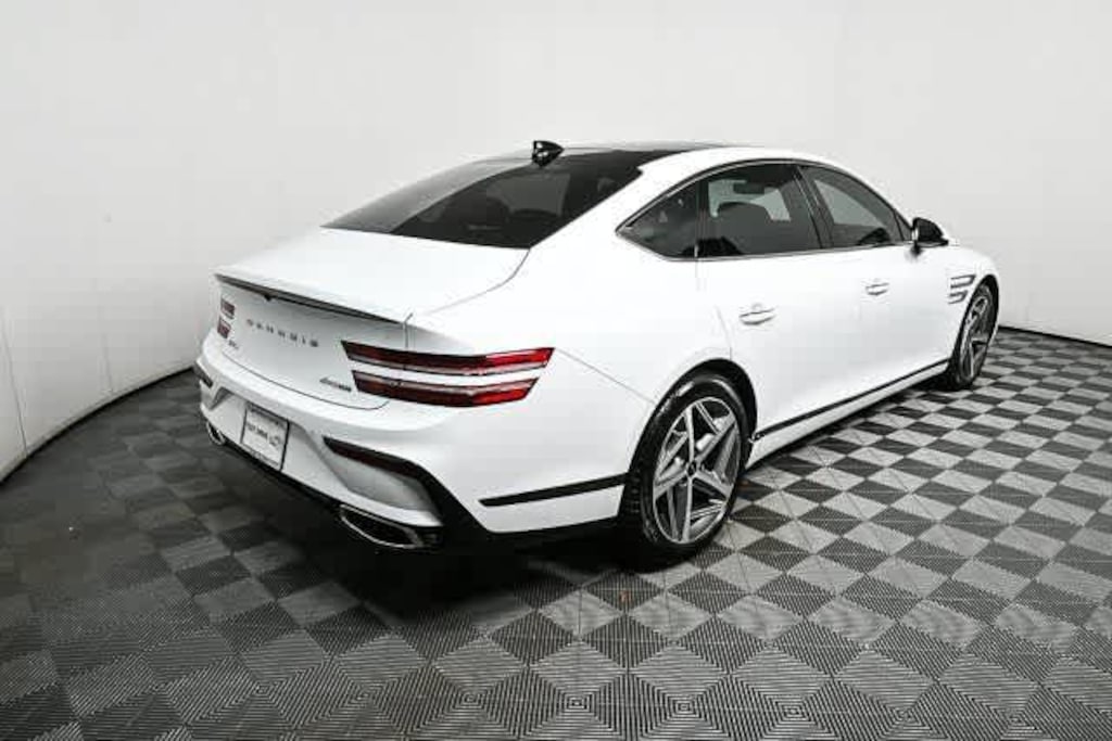 Leather Seats, Navigation, Sunroof, Panoramic Roof, All Wheel Drive, Power Liftgate, Rear Air, Heated Driver Seat, Heated Rear Seat, Cooled Driver Seat. MP3 Player, Remote Trunk Release, Keyless Entry, Steering Wheel Controls. Non-Smoker vehicle Genesis 3.5T Sport Advanced with Alta White exterior and Obsidian Black interior features a V6 Cylinder Engine with 375 HP at 5800 RPM*.