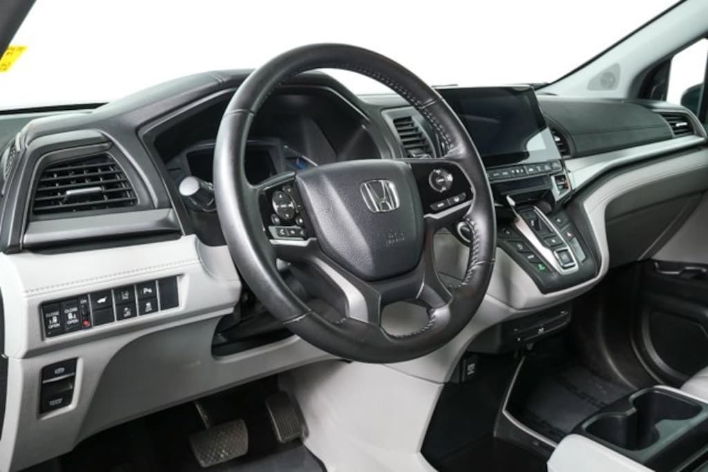 The 2019 Honda Odyssey Touring in Obsidian Blue Pearl with Gray Leather blends family-friendly versatility with advanced technology and comfort. Its sleek exterior is paired with a spacious interior that offers three rows of seating and intuitive controls, making it ideal for daily commutes or long road trips.