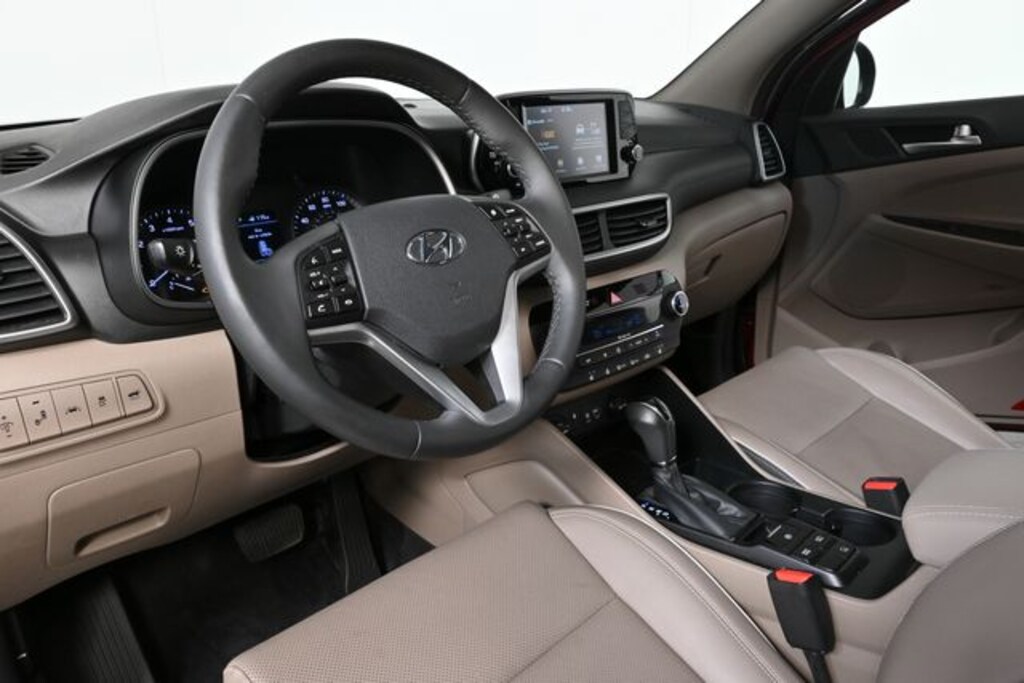 This 2020 Hyundai Tucson is equipped with Option Group 01, Tucson Limited, 4D Sport Utility, 2.4L I4 DGI DOHC 16V, FWD, Gemstone Red, Beige w/Leather Seat Trim, 18" x 7.0J Alloy Wheels, 4-Wheel Disc Brakes, 8 Speakers, ABS brakes, Air Conditioning, Alloy wheels, AM/FM radio: SiriusXM, Apple CarPlay & Android Auto, Auto-dimming Rear-View mirror, Automatic temperature control, Axle Ratio: 3.064, Brake assist, Bumpers: body-color, Cargo Net, Carpeted Floor Mats, Delay-off headlights, Driver door bin, Driver vanity mirror, Dual front impact airbags, Dual front side impact airbags, Electronic Stability Control, Emergency communication system, Exterior Parking Camera Rear, First Aid Kit, Four wheel independent suspension, Front anti-roll bar, Front Bucket Seats, Front Center Armrest, Front dual zone A/C, Front fog lights, Front reading lights, Fully automatic headlights, Garage door transmitter: HomeLink, Heated door mirrors, Heated Front Bucket Seats, Heated front seats, Heated steering wheel, Illuminated entry, Leather Seat Trim, Leather Shift Knob, Low tire pressure warning, Occupant sensing airbag, Outside temperature display, Overhead airbag, Overhead console, Panic alarm, Passenger door bin, Passenger vanity mirror, Power door mirrors, Power driver seat, Power Liftgate, Power passenger seat, Power steering, Power windows, Radio: Infinity Audio System, Rear anti-roll bar, Rear Bumper Applique, Rear seat center armrest, Rear window defroster, Rear window wiper, Remote keyless entry, Reversible Cargo Tray, Roof rack: rails only, Security system, Speed control, Speed-sensing steering, Split folding rear seat, Spoiler, Steering wheel mounted audio controls, Tachometer, Telescoping steering wheel, Tilt steering wheel, Traction control, Trip computer, Turn signal indicator mirrors, Variably intermittent wipers, and Wheel Locks.