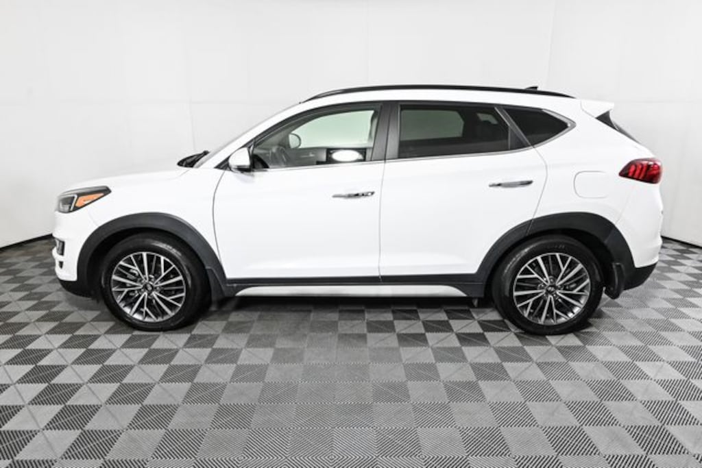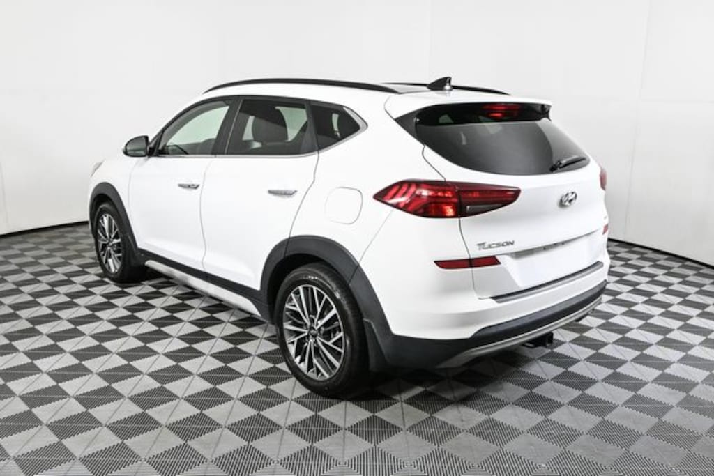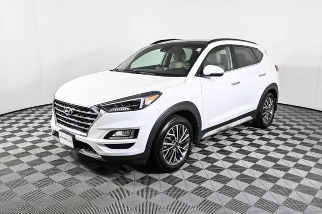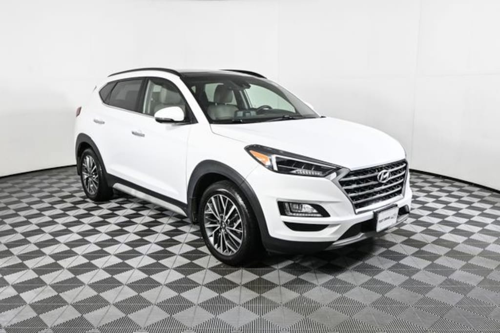 This 2021 Hyundai Tucson is equipped with Option Group 01, Tucson Ultimate, 4D Sport Utility, 2.4L I4 DGI DOHC 16V, AWD, Winter White, Beige w/Leather Seat Trim, 18" x 7.0J Alloy Wheels, 4-Wheel Disc Brakes, 8 Speakers, ABS brakes, Air Conditioning, Alloy wheels, AM/FM radio: SiriusXM, Apple CarPlay & Android Auto, Auto High-beam Headlights, Auto-dimming Rear-View mirror, Automatic temperature control, Axle Ratio: 3.195, Brake assist, Bumpers: body-color, Cargo Cover, Cargo Net, Carpeted Floor Mats, Delay-off headlights, Driver door bin, Driver vanity mirror, Dual front impact airbags, Dual front side impact airbags, Electronic Stability Control, Emergency communication system: Blue Link Connected Car Service (3-year complimentary subscription), First Aid Kit, Four wheel independent suspension, Front anti-roll bar, Front Bucket Seats, Front Center Armrest, Front dual zone A/C, Front fog lights, Front reading lights, Fully automatic headlights, Garage door transmitter: HomeLink, Heated door mirrors, Heated front seats, Heated rear seats, Heated steering wheel, Illuminated entry, Leather Seat Trim, Leather Shift Knob, Low tire pressure warning, Mudguards, Navigation System, Occupant sensing airbag, Outside temperature display, Overhead airbag, Overhead console, Panic alarm, Passenger door bin, Passenger vanity mirror, Power door mirrors, Power driver seat, Power Liftgate, Power moonroof, Power passenger seat, Power steering, Power windows, Radio: Infinity Audio System w/Navigation, Rain sensing wipers, Rear anti-roll bar, Rear Bumper Applique, Rear reading lights, Rear seat center armrest, Rear window defroster, Rear window wiper, Remote keyless entry, Reversible Cargo Tray, Roof rack: rails only, Security system, Speed control, Speed-sensing steering, Split folding rear seat, Spoiler, Steering wheel mounted audio controls, Tachometer, Telescoping steering wheel, Tilt steering wheel, Traction control, Trip computer, Turn signal indicator mirrors, Variably intermittent wipers, Ventilated Front AND Rear Seats, and Ventilated front seats.