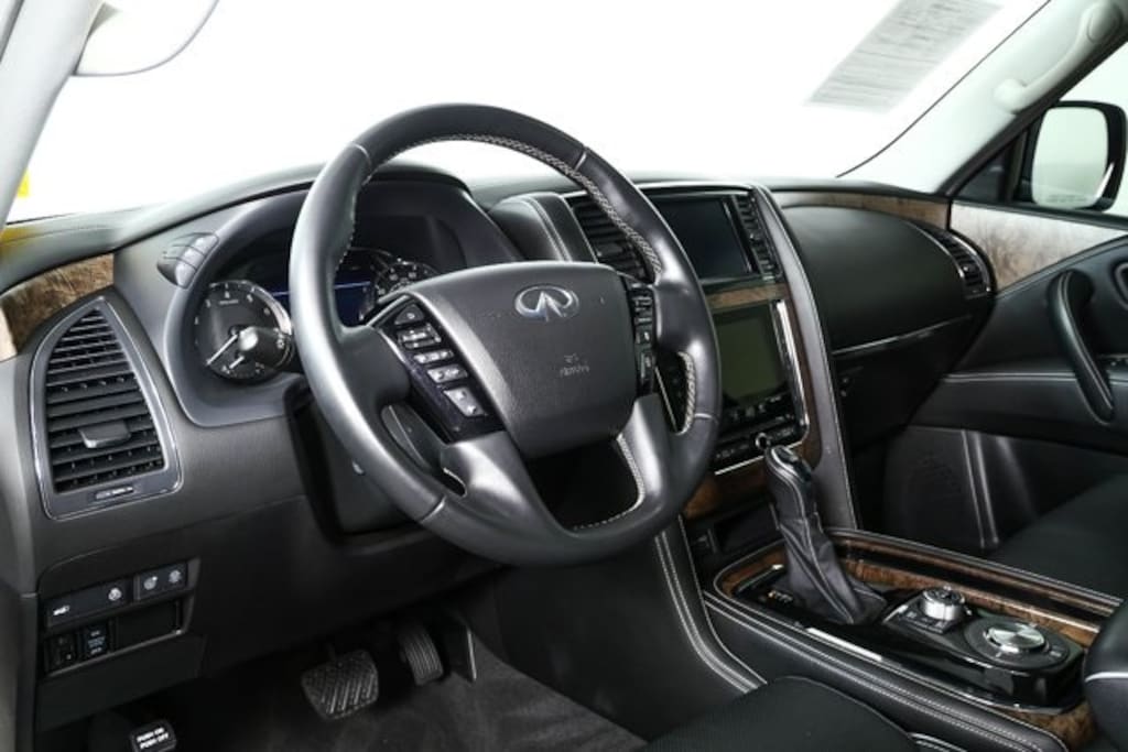 The 2021 Infiniti QX80 Premium Select is a full-size luxury SUV that blends commanding presence with refined comfort. With its potent V8 engine, advanced all-wheel-drive system, and spacious, high-quality interior, it offers an effortless combination of performance, technology, and premium luxury for families or long-distance travel.