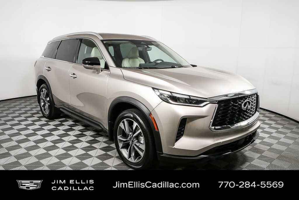 Leather Seats, Third Row Seat, Navigation, Sunroof, Panoramic Roof, Power Liftgate, Rear Air, Heated Driver Seat, Heated Rear Seat, Cooled Driver Seat Rear Spoiler, MP3 Player, Keyless Entry, Privacy Glass. INFINITI LUXE with Warm Titanium exterior and Sandstone interior features a 4 Cylinder Engine with 268 HP at 5600 RPM*.