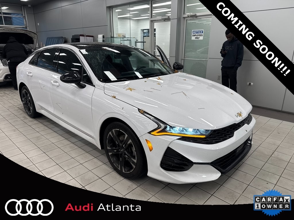 The 2023 Kia K5 GT-Line in Glacial White Pearl with Black cloth interior delivers a sharp, modern design paired with sporty performance and smart technology. Its turbocharged engine and confident styling are complemented by advanced safety features and upscale comfort touches that make every drive more enjoyable.