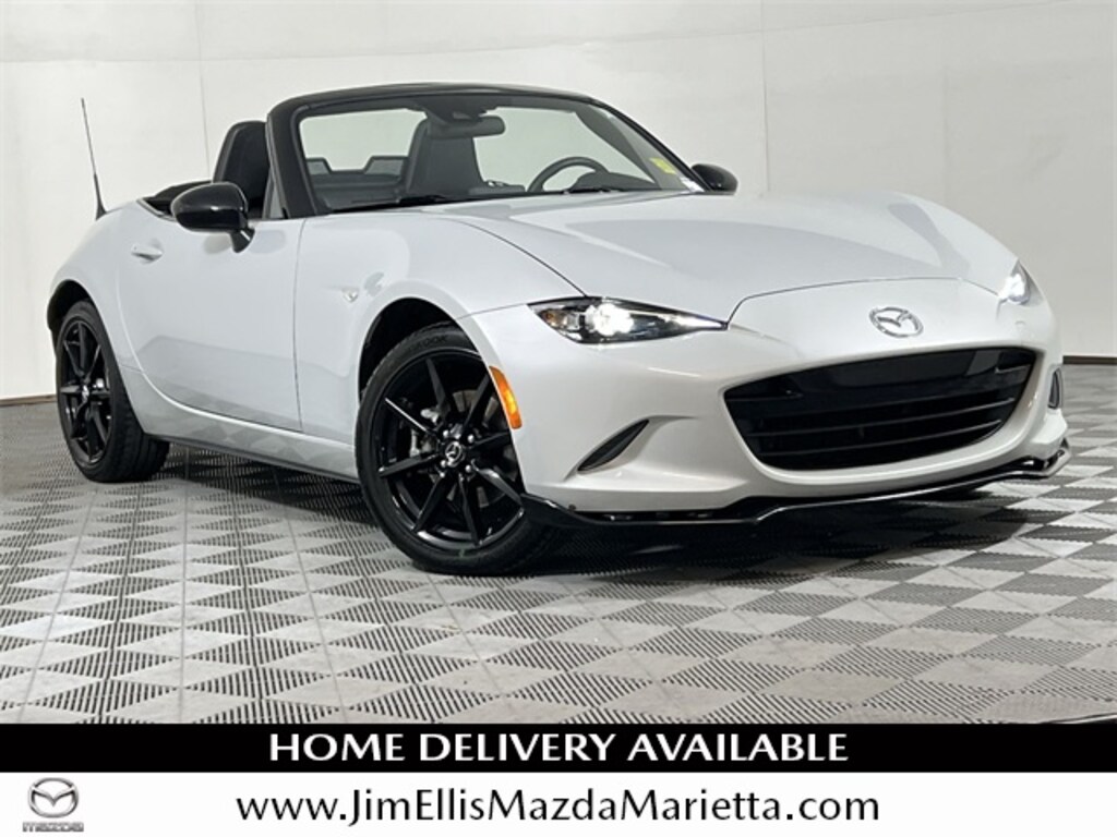 Jim Ellis Mazda Marietta is proud to offer this handsome 2019 Mazda MX-5 Miata Club in Ceramic Metallic, Beautifully equipped with i-ACTIVSENSE Club Package (Lane Departure Warning System and Smart City Brake Support), 4-Wheel Disc Brakes, 9 Speakers, ABS brakes, Air Conditioning, Alloy wheels, AM/FM radio: SiriusXM, BOSE Audio System, Brake assist, Bumpers: body-color, Cloth Upholstery w/Red Stitching, Convertible roof wind blocker, Driver vanity mirror, Dual front impact airbags, Dual front side impact airbags, Electronic Stability Control, Emergency communication system: MAZDA CONNECT, Exterior Parking Camera Rear, Four wheel independent suspension, Front anti-roll bar, Front Bucket Seats, Front Center Armrest, Glass rear window, Heated front seats, Illuminated entry, Leather Shift Knob, Low tire pressure warning, MAZDA CONNECT Infotainment System, Occupant sensing airbag, Outside temperature display, Panic alarm, Passenger vanity mirror, Power door mirrors, Power steering, Power windows, Radio data system, Radio: AM/FM Sound System, Rear anti-roll bar, Rear window defroster, Reclining Heated Front Bucket Seats, Remote keyless entry, Speed control, Speed-sensing steering, Spoiler, Sport steering wheel, Steering wheel mounted audio controls, Tachometer, Telescoping steering wheel, Tilt steering wheel, Traction control, Trip computer, Variably intermittent wipers, and Wheels: 17" x 7" Metallic Black Aluminum Alloy. Recent Arrival! Odometer is 1622 miles below market average! 26/35 City/Highway MPG