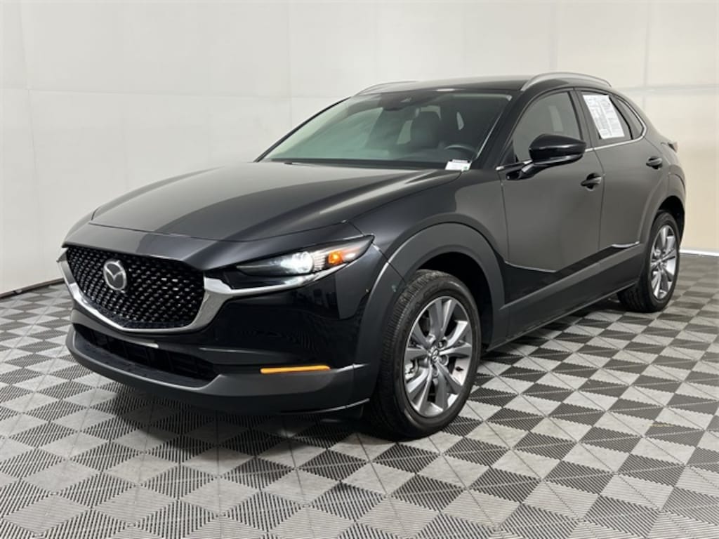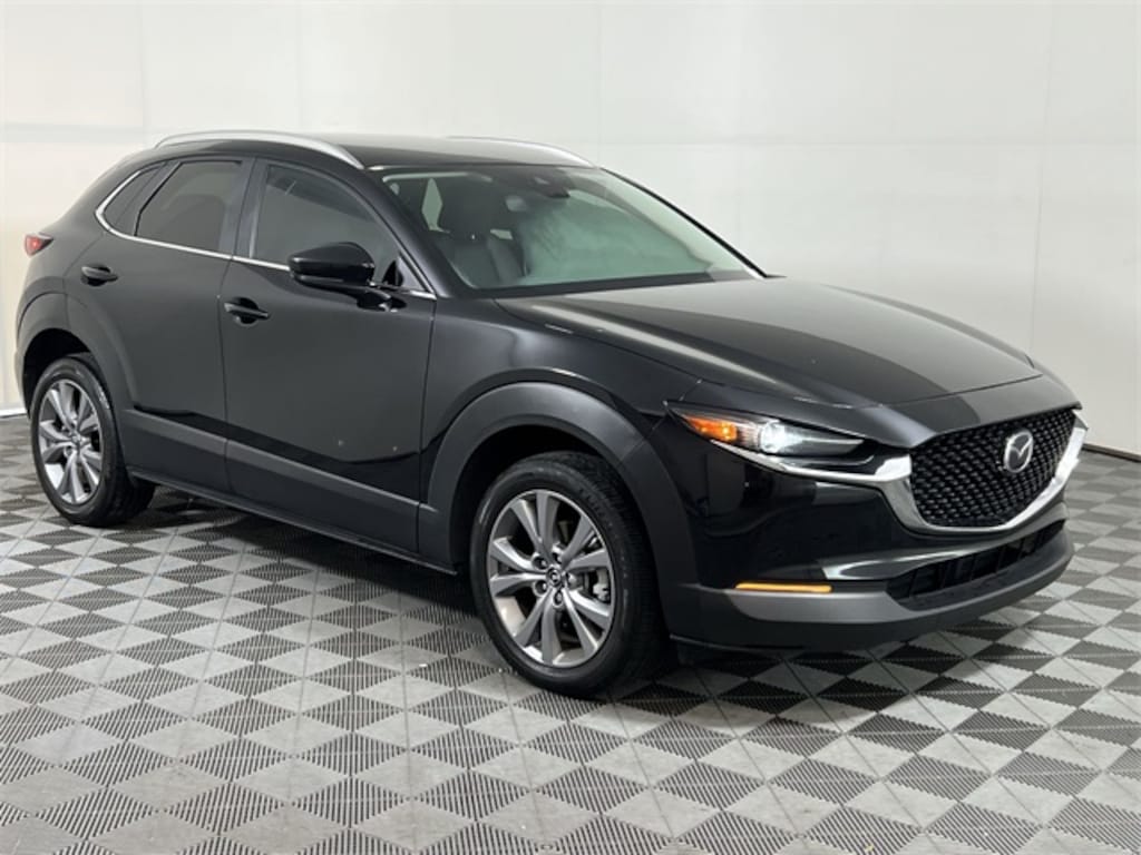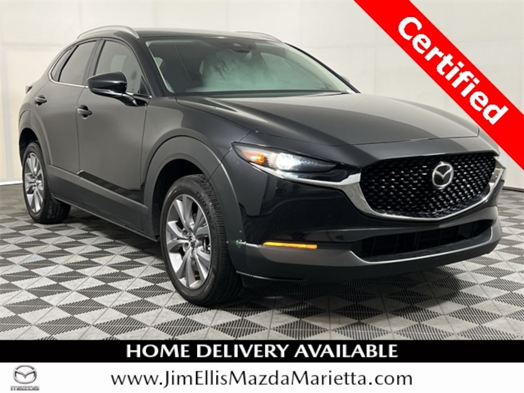 Jim Ellis Mazda Marietta is excited to offer this wonderful-looking 2023 Mazda CX-30 2.5 S Preferred Package in Jet Black Mica, Beautifully equipped with Mazda Certified Pre-Owned Certified, 4-Wheel Disc Brakes, 4.095 Axle Ratio, 8 Speakers, ABS brakes, Air Conditioning, Alloy wheels, AM/FM radio, AppLink/Apple CarPlay and Android Auto, Auto High-beam Headlights, Automatic temperature control, Brake assist, Bumpers: body-color, Cargo Tray, Compass, Delay-off headlights, Driver door bin, Driver vanity mirror, Dual front impact airbags, Dual front side impact airbags, Electronic Stability Control, Emergency communication system: Mazda Connected Services (3-year complimentary trial included), Exterior Parking Camera Rear, Front anti-roll bar, Front Bucket Seats, Front Center Armrest, Front dual zone A/C, Front reading lights, Front wheel independent suspension, Fully automatic headlights, Heated Front Bucket Seats, Heated front seats, Illuminated entry, Knee airbag, Leather Shift Knob, Leather steering wheel, Leatherette Seat Trim, Low tire pressure warning, MAZDA CONNECT Infotainment System, Memory seat, Moon Roof Credit, Occupant sensing airbag, Outside temperature display, Overhead airbag, Overhead console, Panic alarm, Passenger door bin, Passenger vanity mirror, Power door mirrors, Power driver seat, Power moonroof, Power steering, Power windows, Radio data system, Radio: AM/FM/HD Audio System, Rain sensing wipers, Rear seat center armrest, Rear side impact airbag, Rear window defroster, Rear window wiper, Remote keyless entry, Speed control, Speed-sensing steering, Split folding rear seat, Spoiler, Steering wheel mounted audio controls, Tachometer, Telescoping steering wheel, Tilt steering wheel, Traction control, Trip computer, Turn signal indicator mirrors, Variably intermittent wipers, Wheel Locks, and Wheels: 18" x 7J Aluminum Alloy. Odometer is 586 miles below market average! 26/33 City/Highway MPG