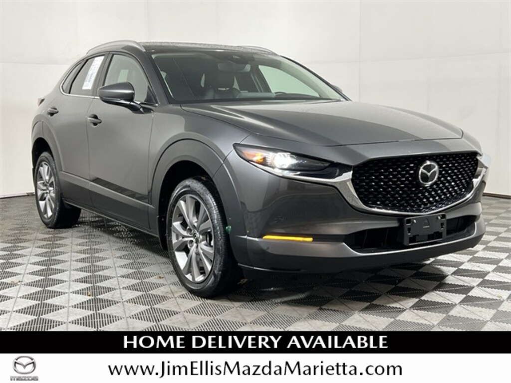 Jim Ellis Mazda Marietta is pleased to offer this handsome 2023 Mazda CX-30 2.5 S Preferred Package in Machine Gray Metallic, Beautifully equipped with Mazda Certified Pre-Owned Certified, 4-Wheel Disc Brakes, 4.095 Axle Ratio, 8 Speakers, ABS brakes, Air Conditioning, Alloy wheels, AM/FM radio, AppLink/Apple CarPlay and Android Auto, Auto High-beam Headlights, Automatic temperature control, Brake assist, Bumpers: body-color, Cargo Net, Compass, Delay-off headlights, Driver door bin, Driver vanity mirror, Dual front impact airbags, Dual front side impact airbags, Electronic Stability Control, Emergency communication system: Mazda Connected Services (3-year complimentary trial included), Exterior Parking Camera Rear, Front & Rear Splash Guards, Front anti-roll bar, Front Bucket Seats, Front Center Armrest, Front dual zone A/C, Front reading lights, Front wheel independent suspension, Fully automatic headlights, Heated Front Bucket Seats, Heated front seats, Illuminated entry, Knee airbag, Leather Shift Knob, Leather steering wheel, Leatherette Seat Trim, Low tire pressure warning, Machine Gray Metallic Paint, MAZDA CONNECT Infotainment System, Memory seat, Moon Roof Credit, Occupant sensing airbag, Outside temperature display, Overhead airbag, Overhead console, Panic alarm, Passenger door bin, Passenger vanity mirror, Power door mirrors, Power driver seat, Power moonroof, Power steering, Power windows, Radio data system, Radio: AM/FM/HD Audio System, Rain sensing wipers, Rear seat center armrest, Rear side impact airbag, Rear window defroster, Rear window wiper, Remote keyless entry, Speed control, Speed-sensing steering, Split folding rear seat, Spoiler, Steering wheel mounted audio controls, Tachometer, Telescoping steering wheel, Tilt steering wheel, Traction control, Trip computer, Turn signal indicator mirrors, Variably intermittent wipers, Wheel Locks, and Wheels: 18" x 7J Aluminum Alloy. Recent Arrival! 26/33 City/Highway MPG